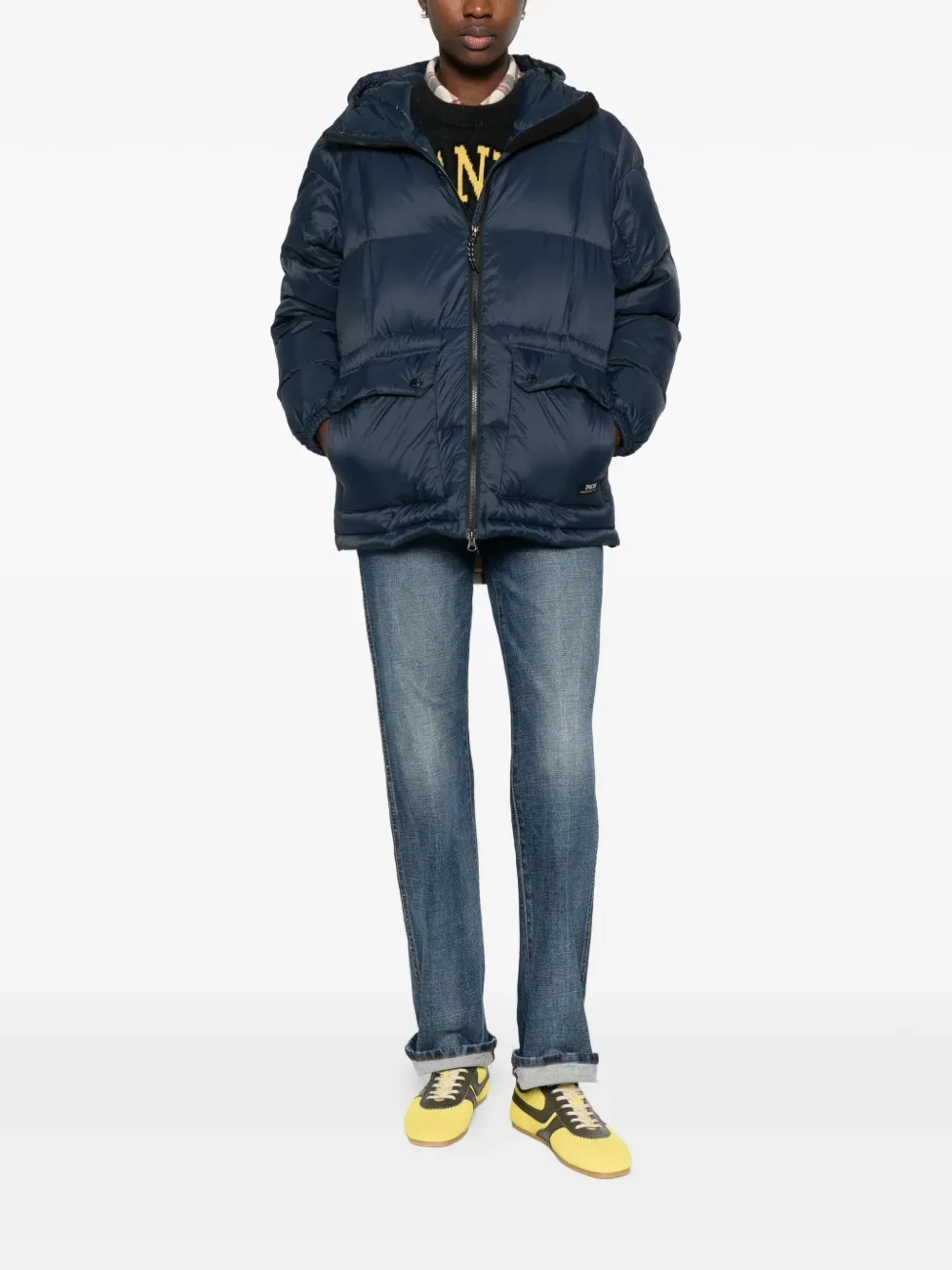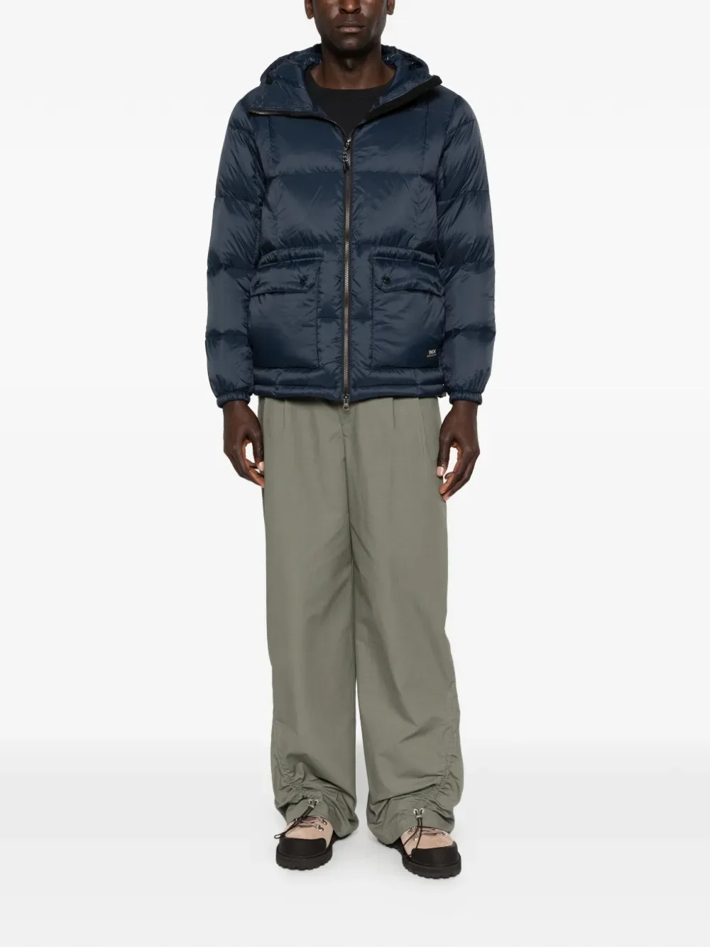 Темно-синяя куртка с капюшоном, застежкой на молнии и накладными карманами с клапанами