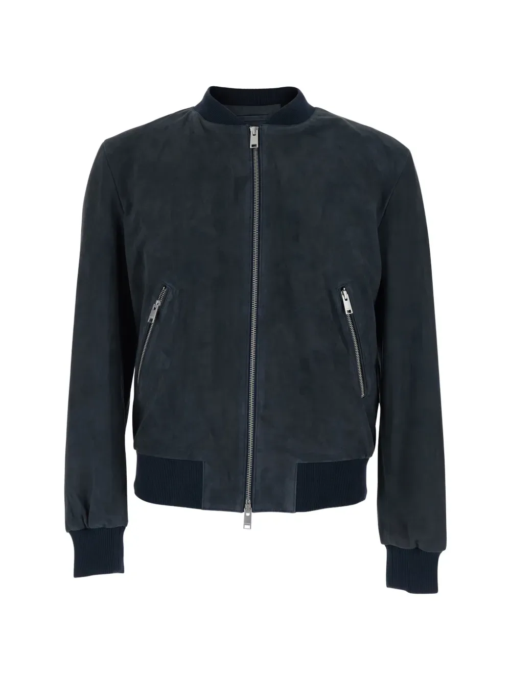 Синий цвет, застежка-молния, ребристые манжеты и подол, боковые карманы на молнии