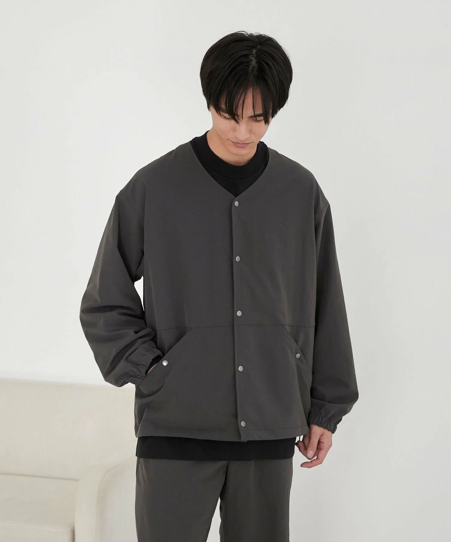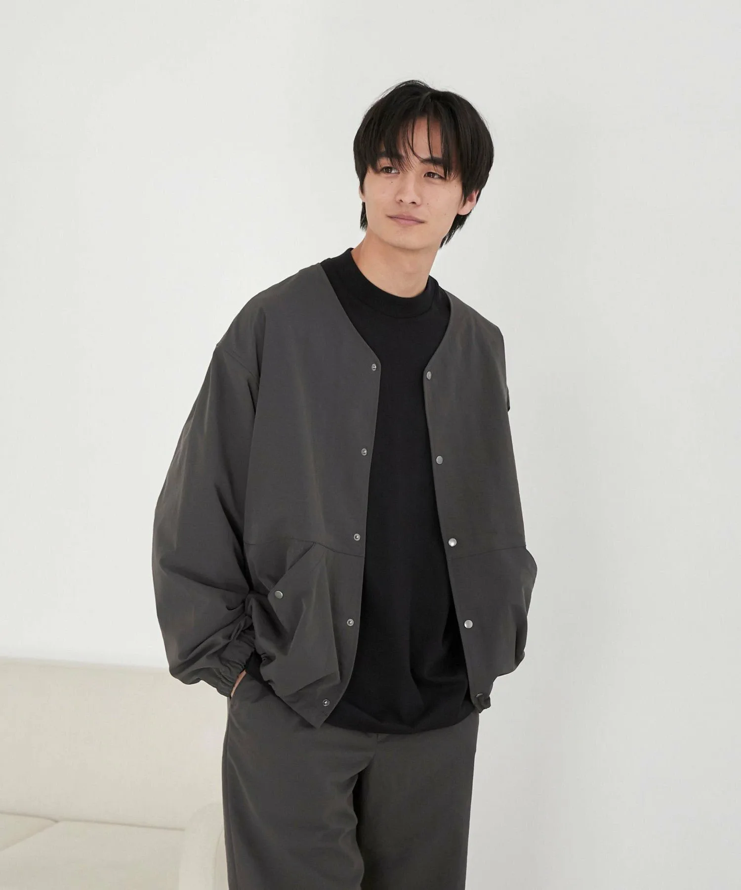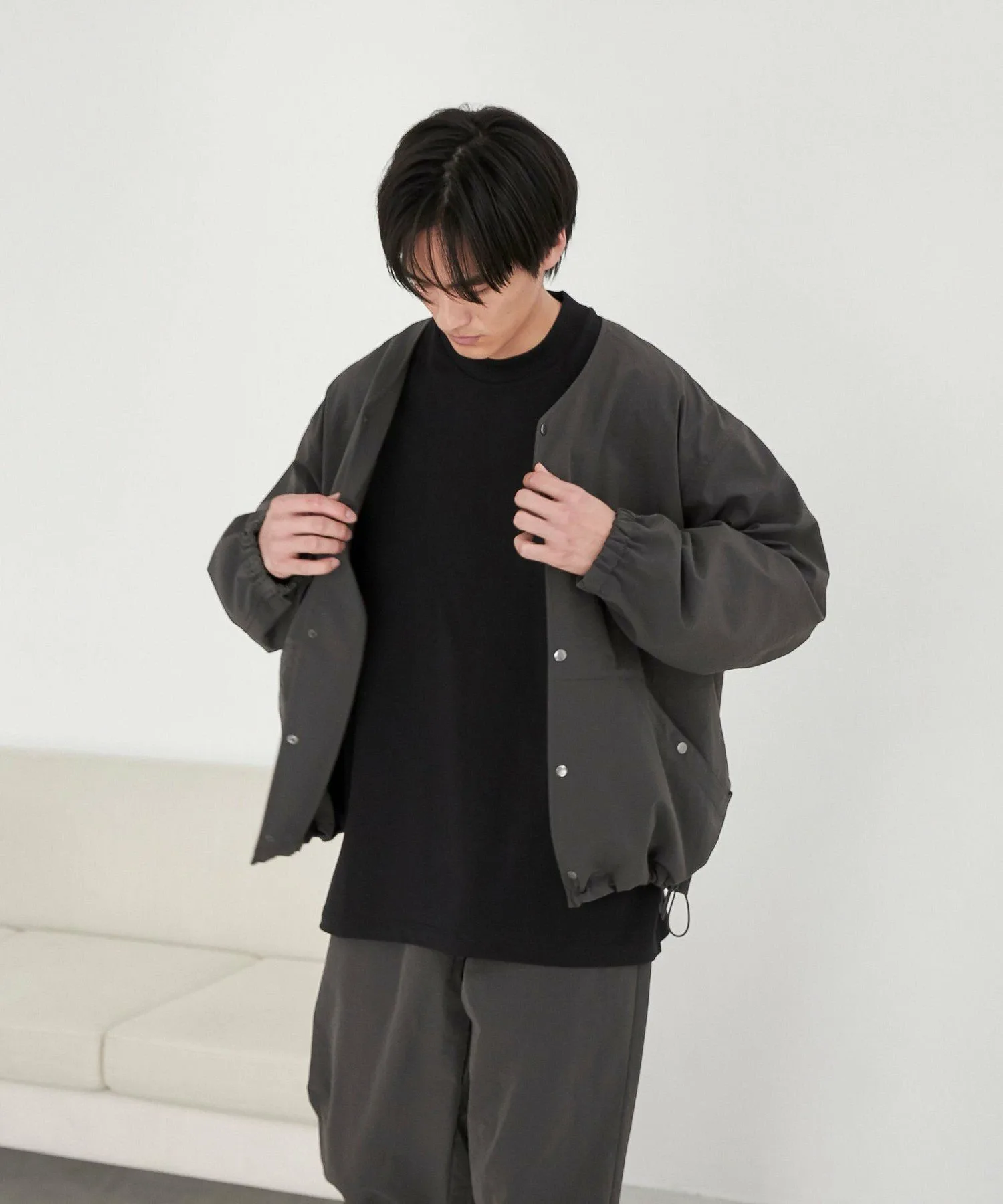 Эта популярная куртка теперь доступна в новом кремовом цвете. Свободный силуэт обеспечивает свободу движений, создавая непринужденный образ. Металлические акценты пуговиц и люверсов добавляют стильный штрих. Манжеты эластичные для комфортной посадки. Шнурок на левом нижнем крае позволяет регулировать силуэт, создавая модный образ. Изготовленная из ткани AIRCO, эта вещь сочетает в себе приятную на ощупь текстуру и универсальную функциональность для создания модного образа. Прозрачность: Слегка прозрачная (кремовый) Толщина ткани: Слегка тонкая Блеск: Отсутствует Подкладка: Отсутствует Боковые карманы: Да Домашняя стирка: Да (используйте сетку для стирки)