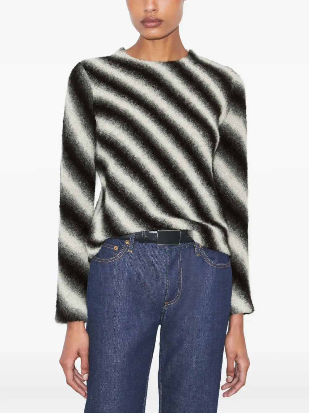 Длинные рукава в черно-белую полоску, круглый вырез