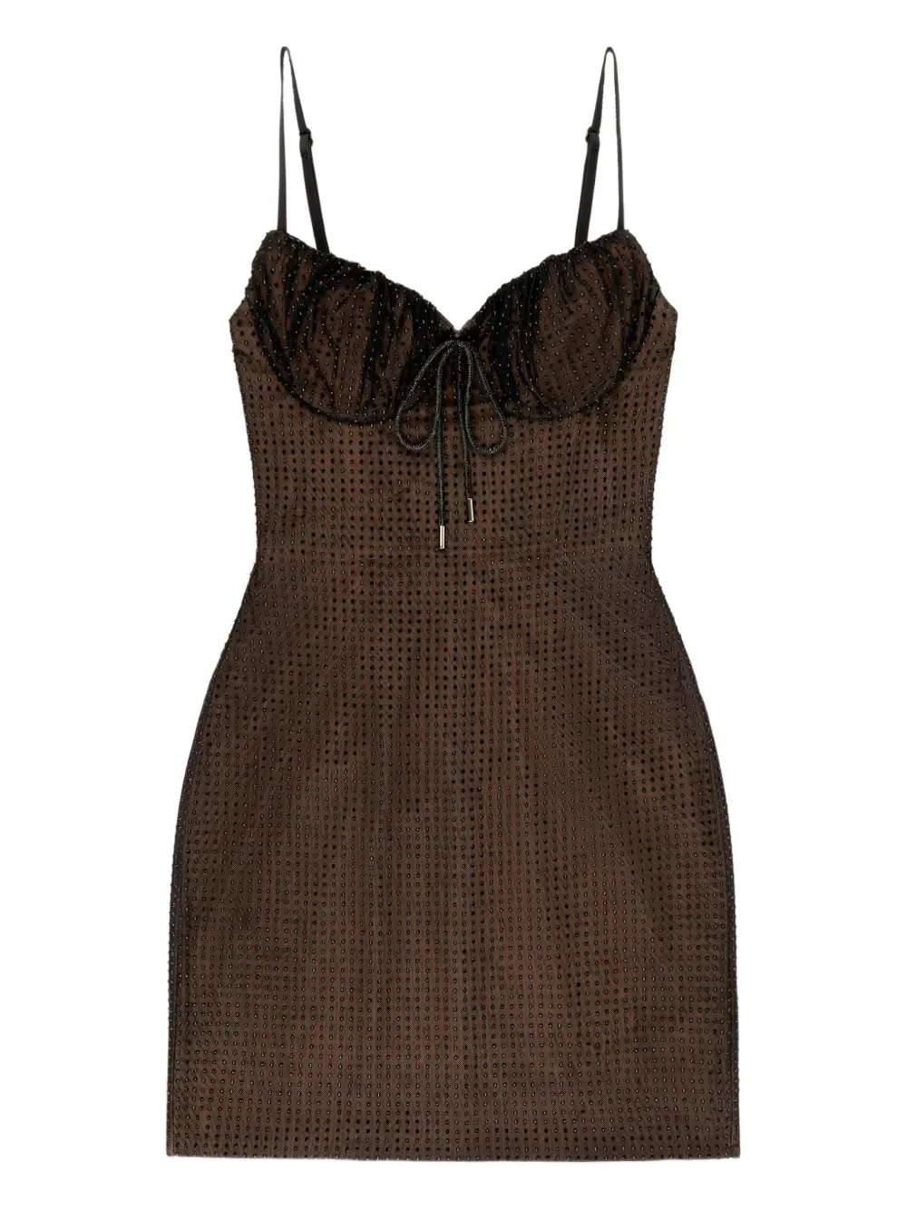 Платье мини с кристаллами AREA, коричневый