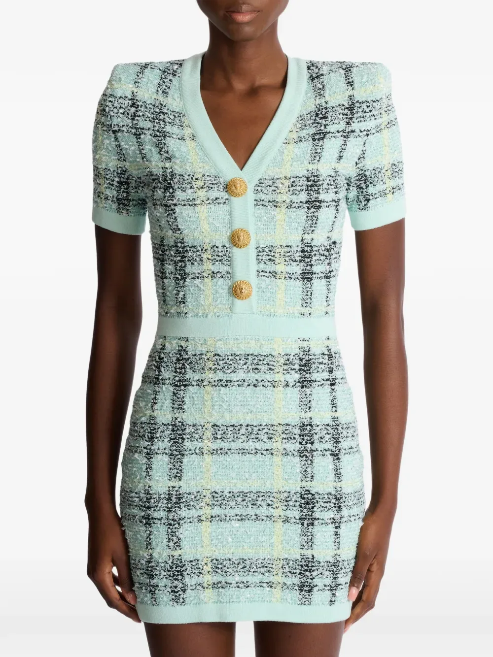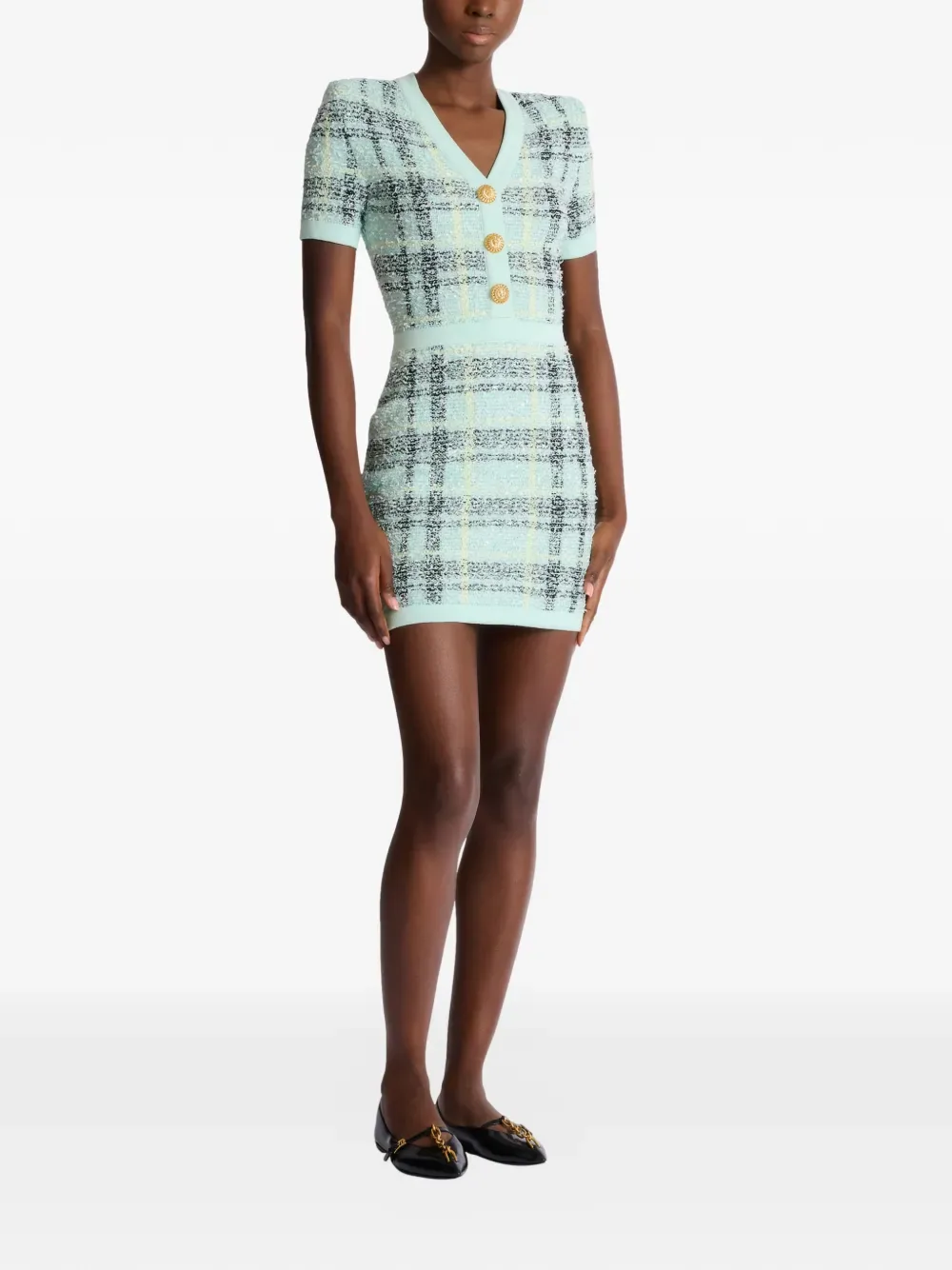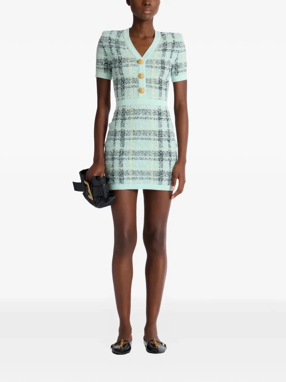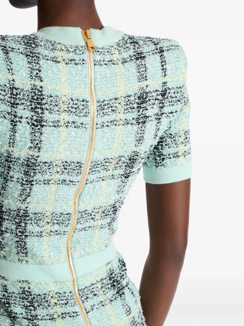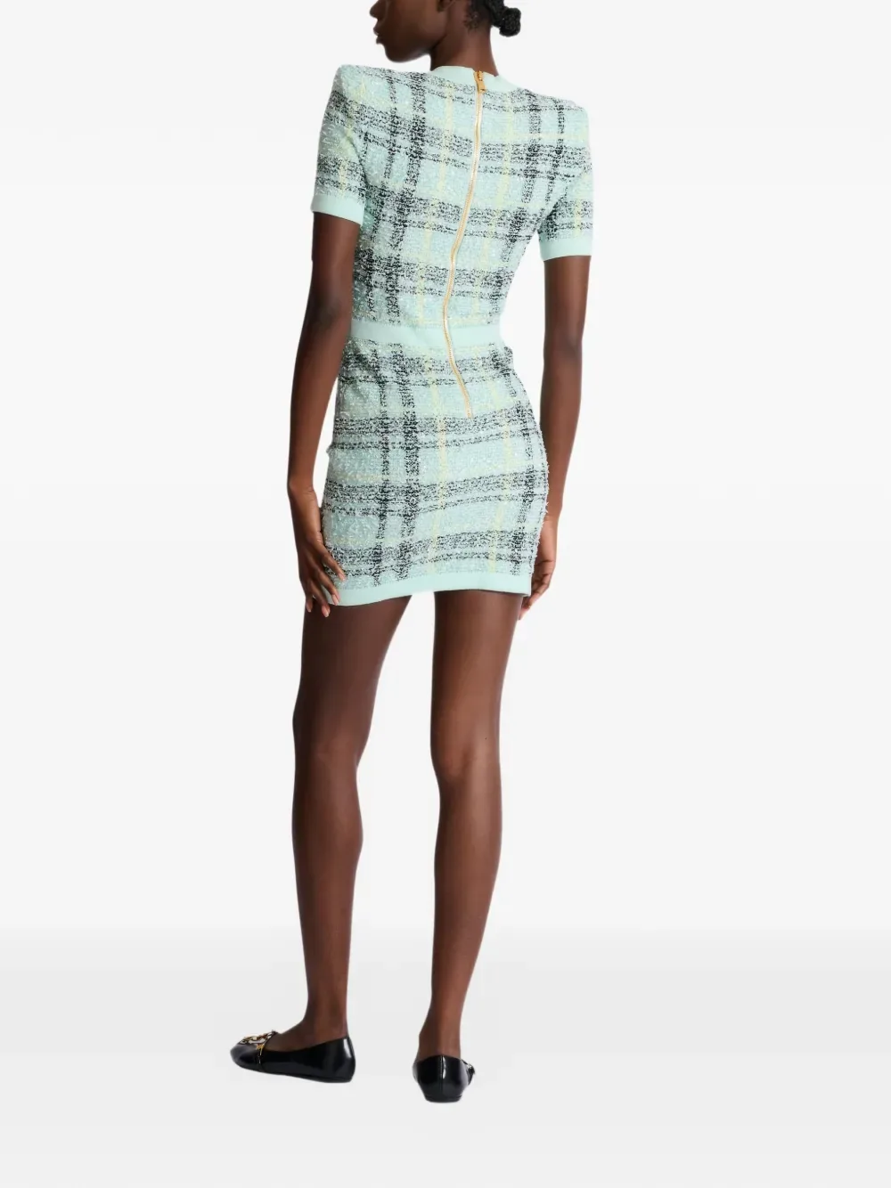 Твидовое платье мини с блестками BALMAIN, зеленый