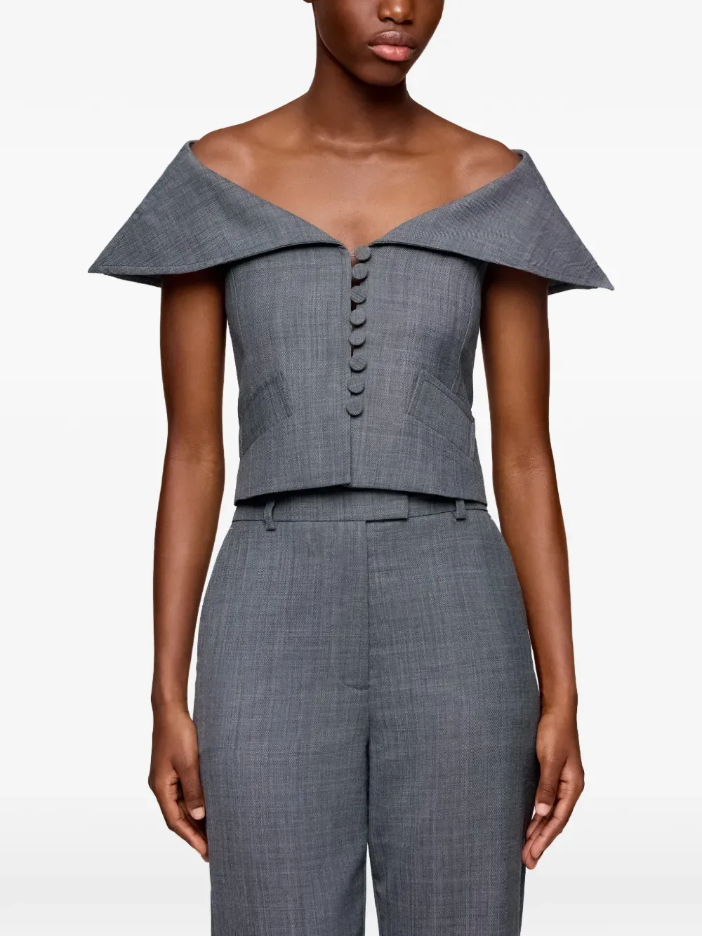 Топ с открытыми плечами GANNI, серый 47 024₽