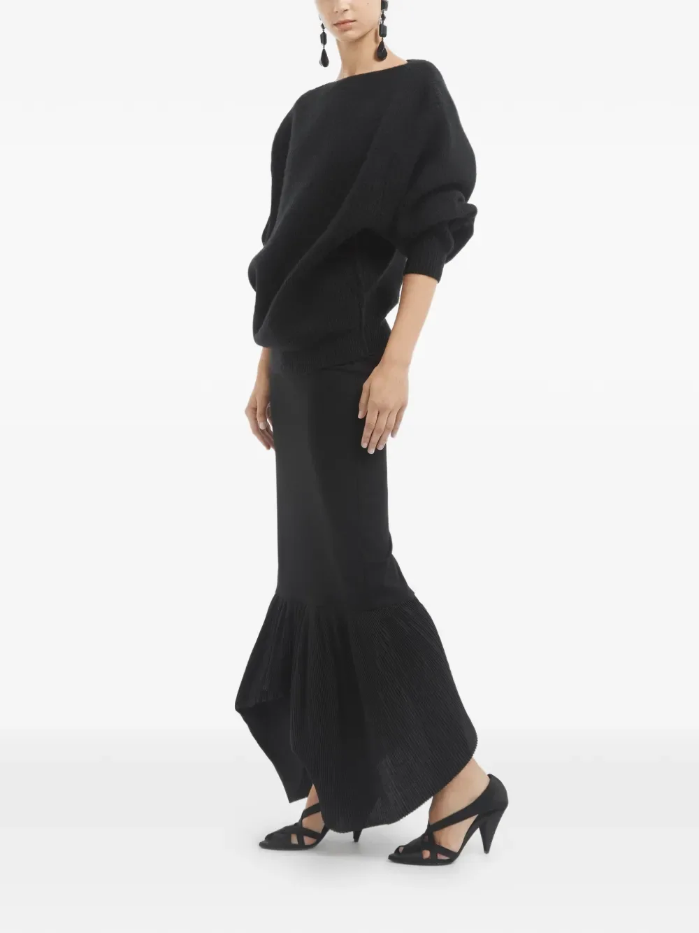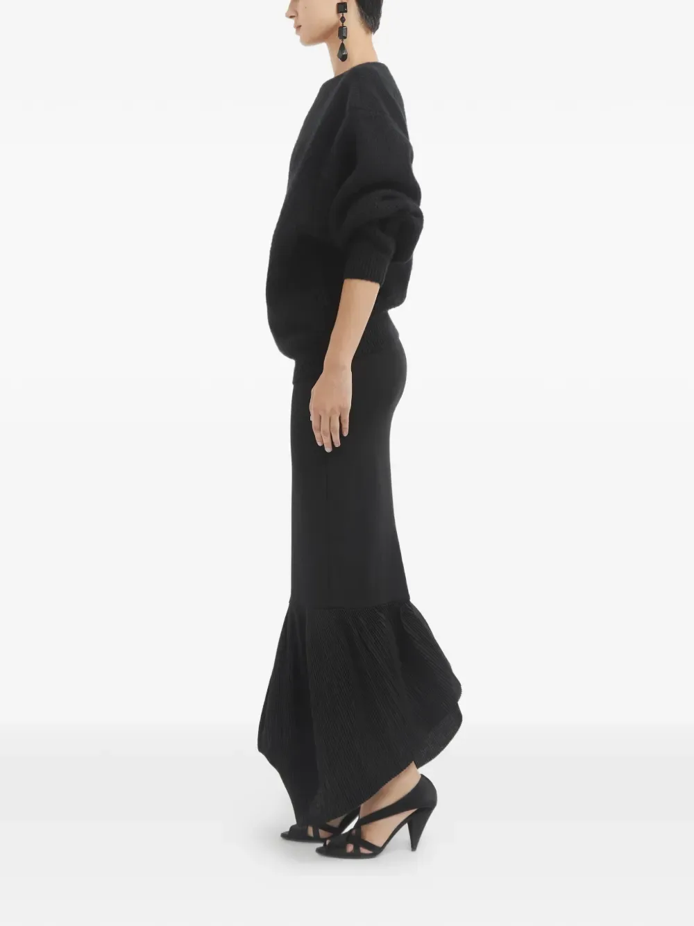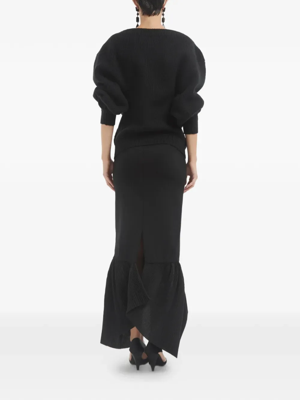 Черный с плиссированным подолом и разрезом сзади