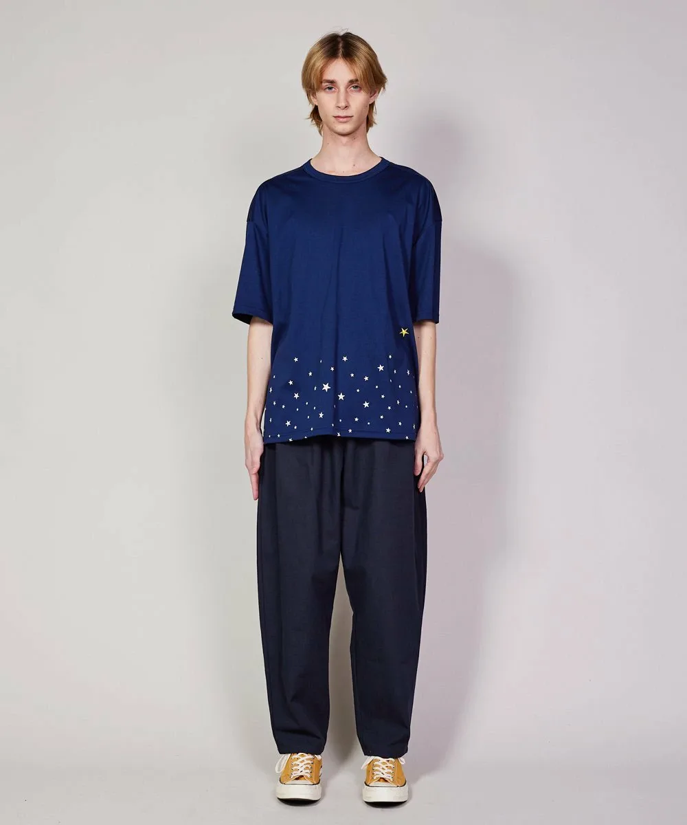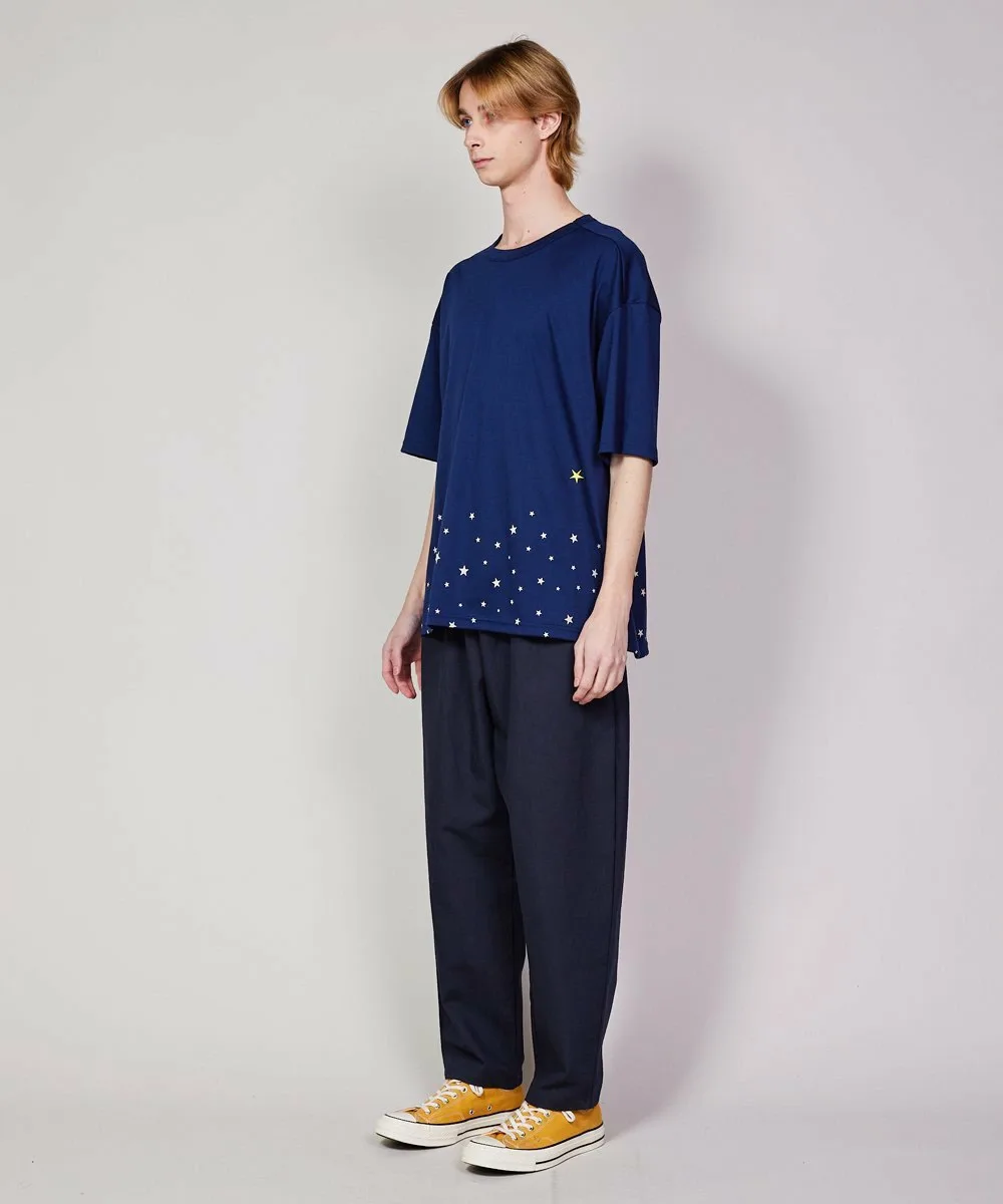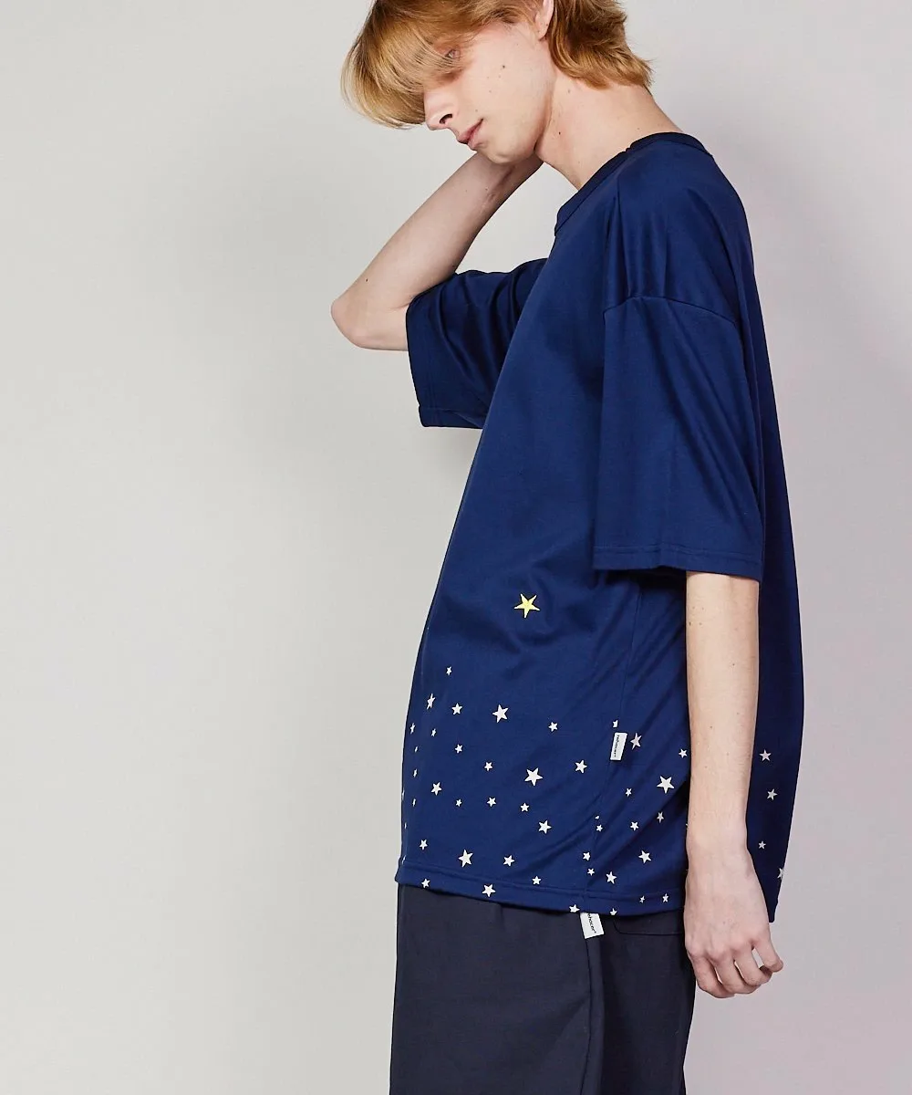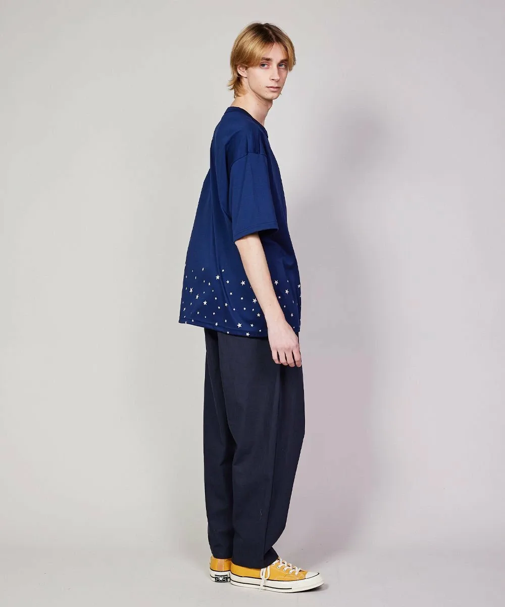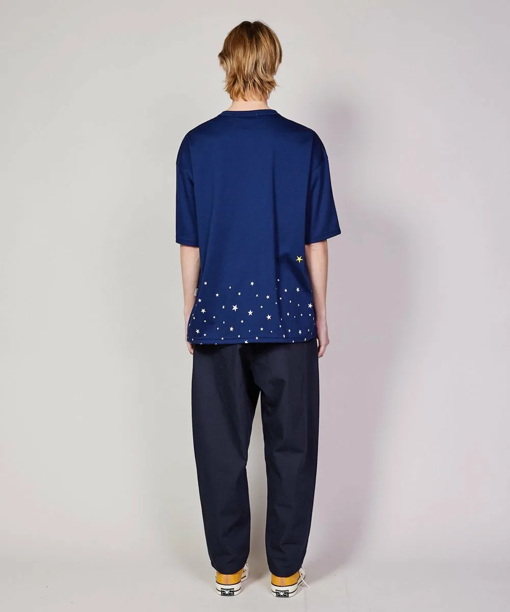 Эта футболка имеет свободный крой и украшена сияющими на ночном небе звездами по низу, что добавляет ей изысканности. Частичная вышивка придает ей стильный вид, а гладкий, блестящий материал создает утонченную атмосферу. Компактная длина позволяет легко сочетать ее с любыми брюками или юбками, а также использовать в качестве нижнего слоя под рубашку или куртку. Рост модели: 183 см, размеры: Черный/L Оливковый, Синий/M