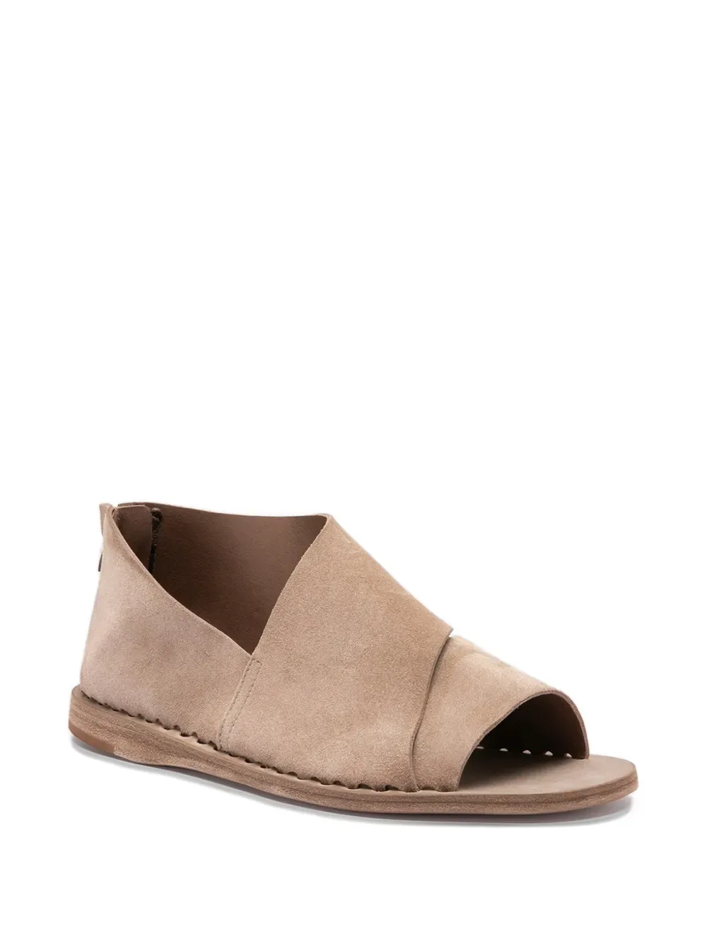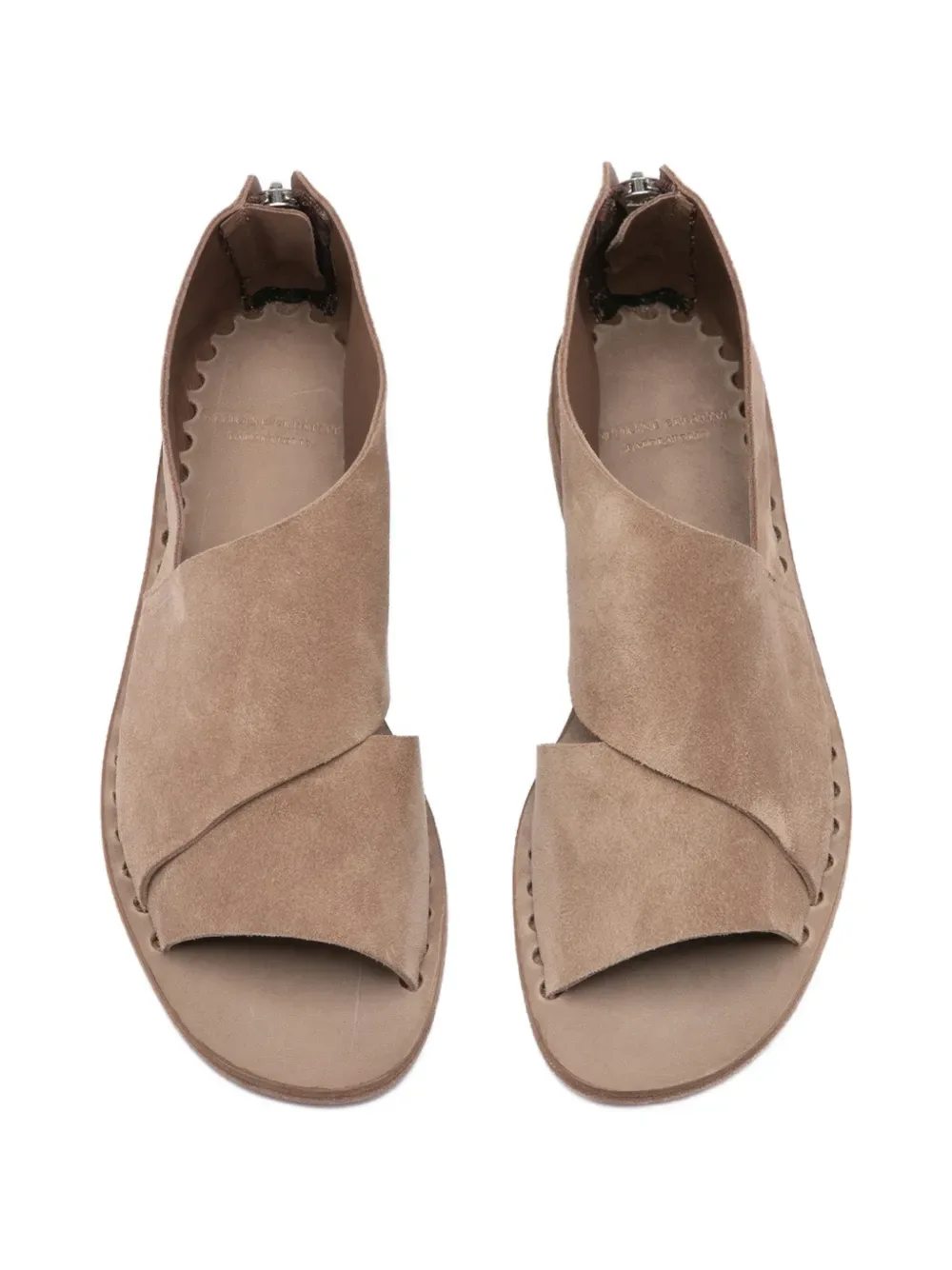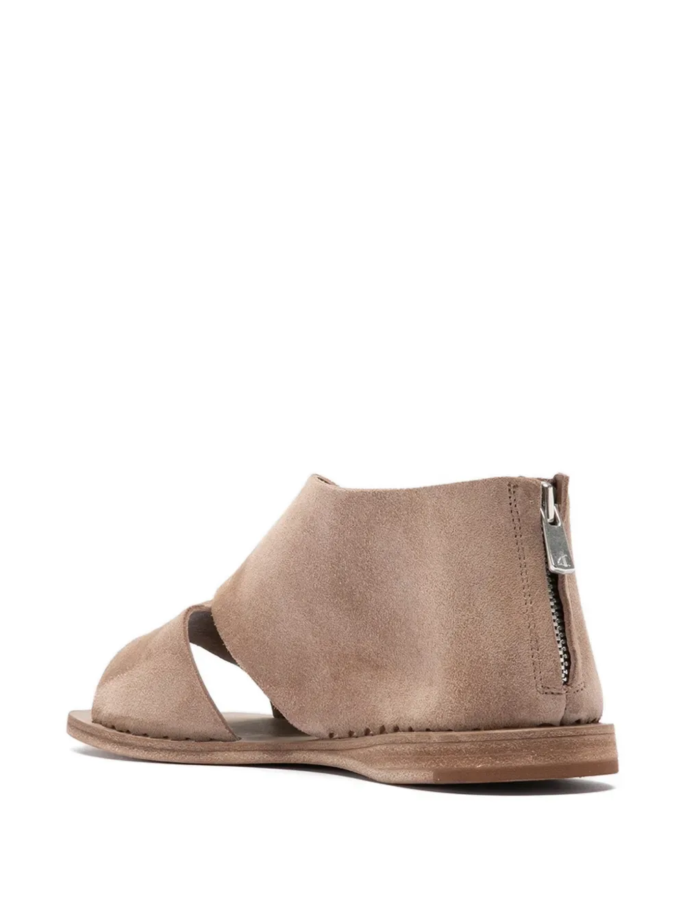 Бежевые кожаные босоножки с перекрывающимися деталями, открытым носком и застежкой-молнией сзади