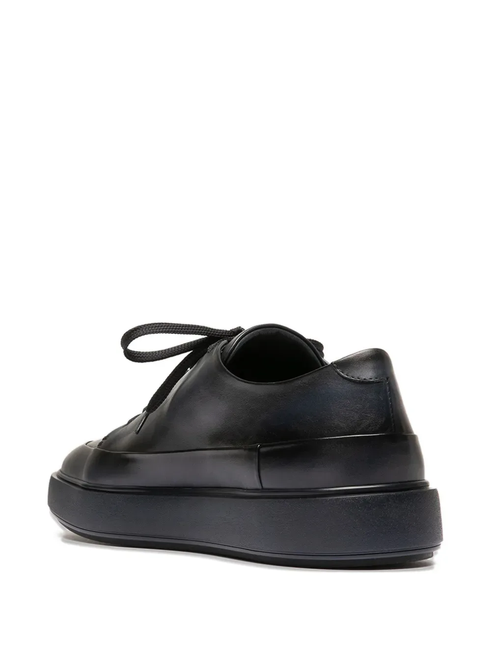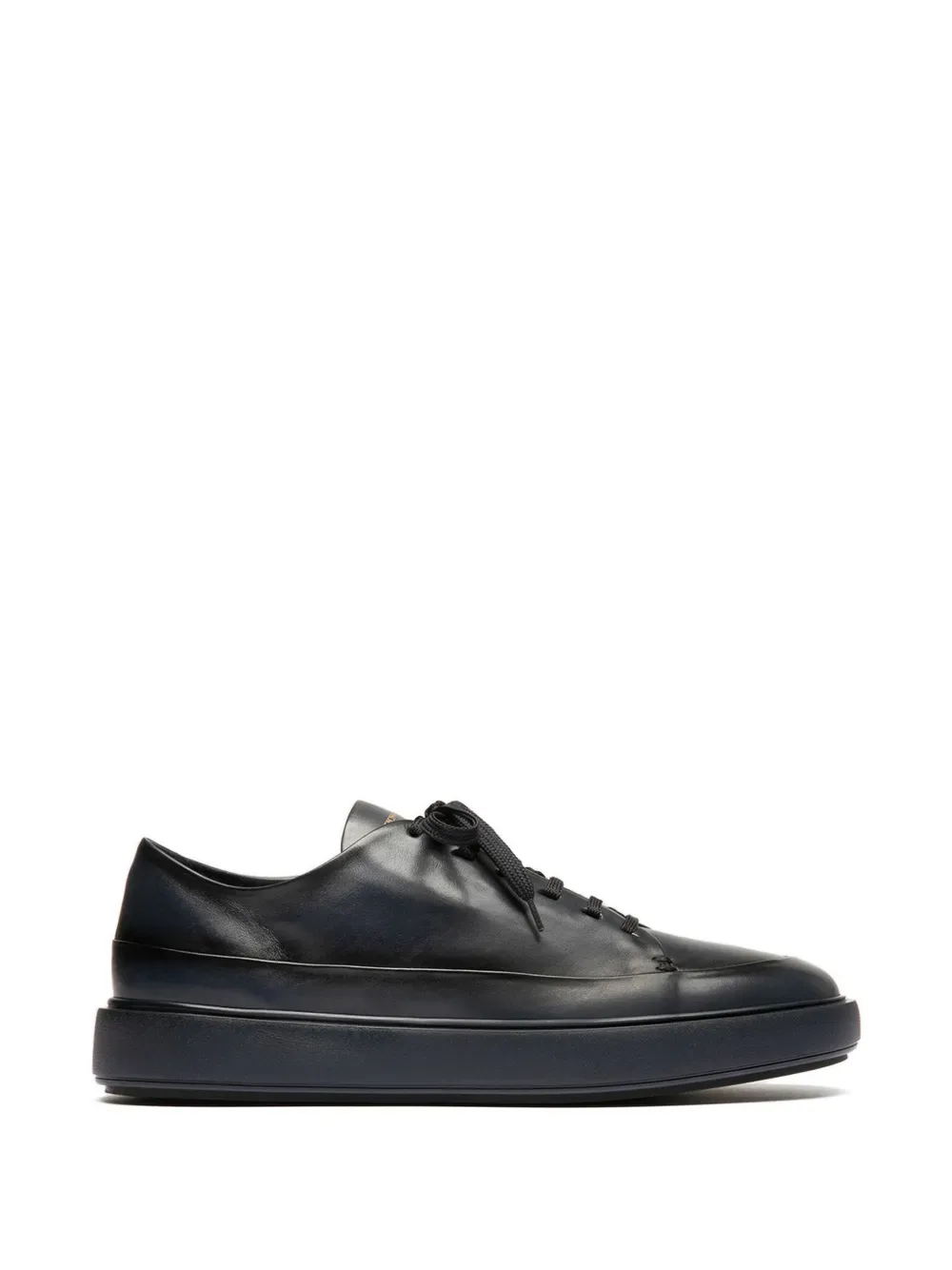 Темно-синие кожаные кроссовки с шнуровкой спереди, платформой, тональной прострочкой и закругленным мысом