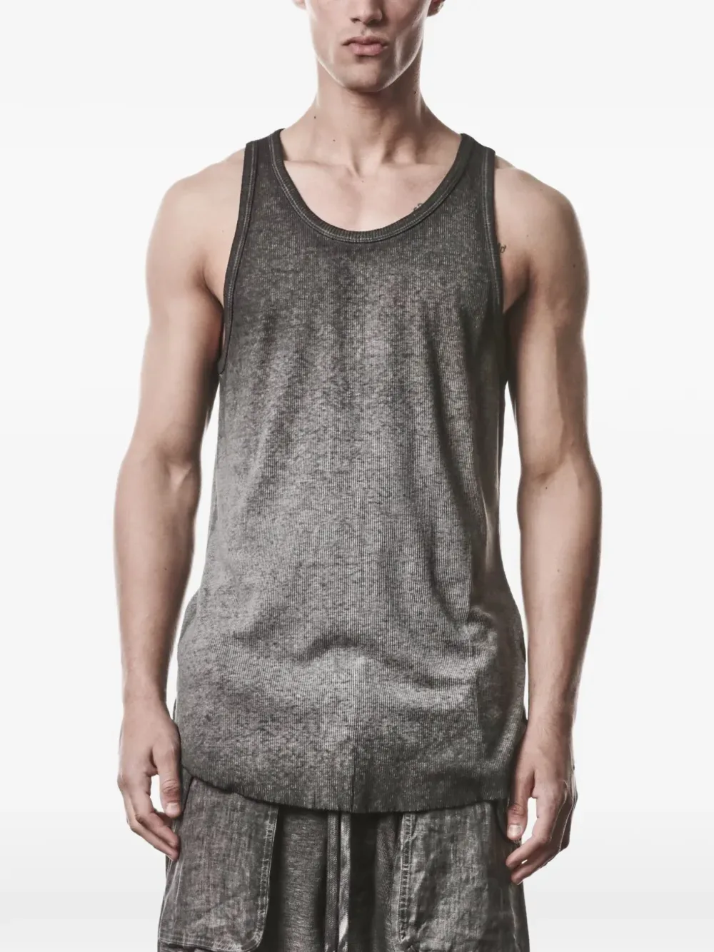 Серый топ из мелкой ребристой ткани с круглым вырезом, без рукавов, с отделкой швами