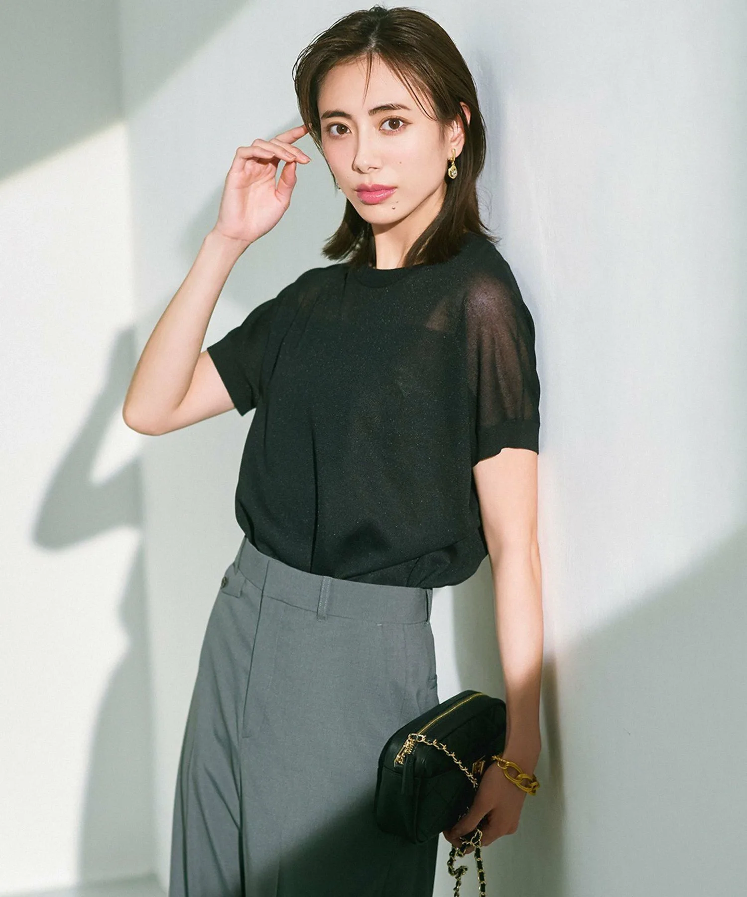 Простой трикотаж в стиле «летучая мышь». Прозрачная вязка добавляет гламура. Этот легкий трикотаж обеспечивает исключительный комфорт, скрывая любые недостатки фигуры. Сочетайте его с широкими брюками для мужского образа или с юбкой для женственного. Универсальная вещь с достаточной выразительностью, она создает стильный образ. Доступен в пяти цветах: воздушный слоновая кость (#003), базовый черный (#005), мягкий бежевый (#033), изысканный темно-коричневый (#035) и освежающий небесно-голубой (#072).