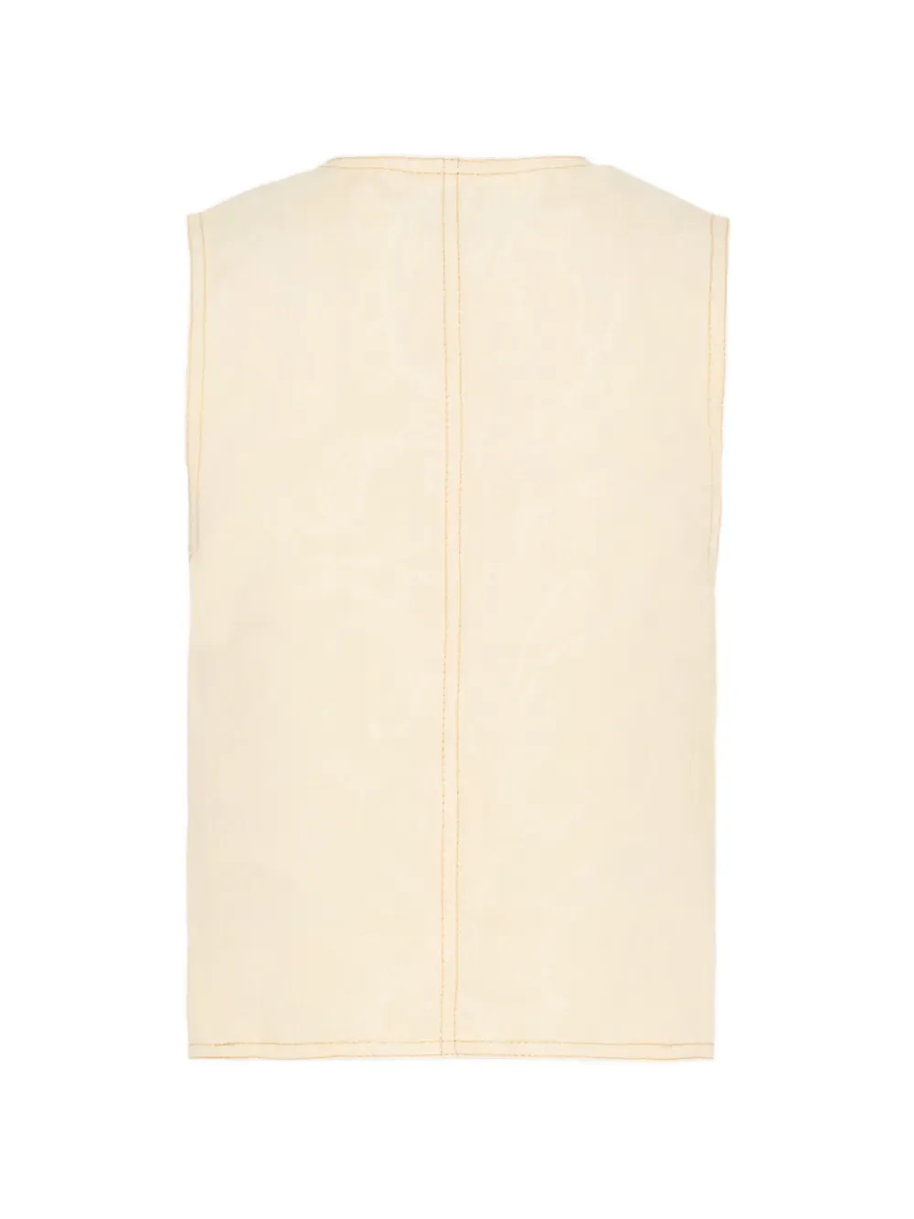 Бежевый топ без рукавов с V-образным вырезом, вышивкой, застежкой на пуговицы и тональной отстрочкой