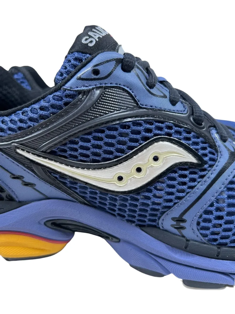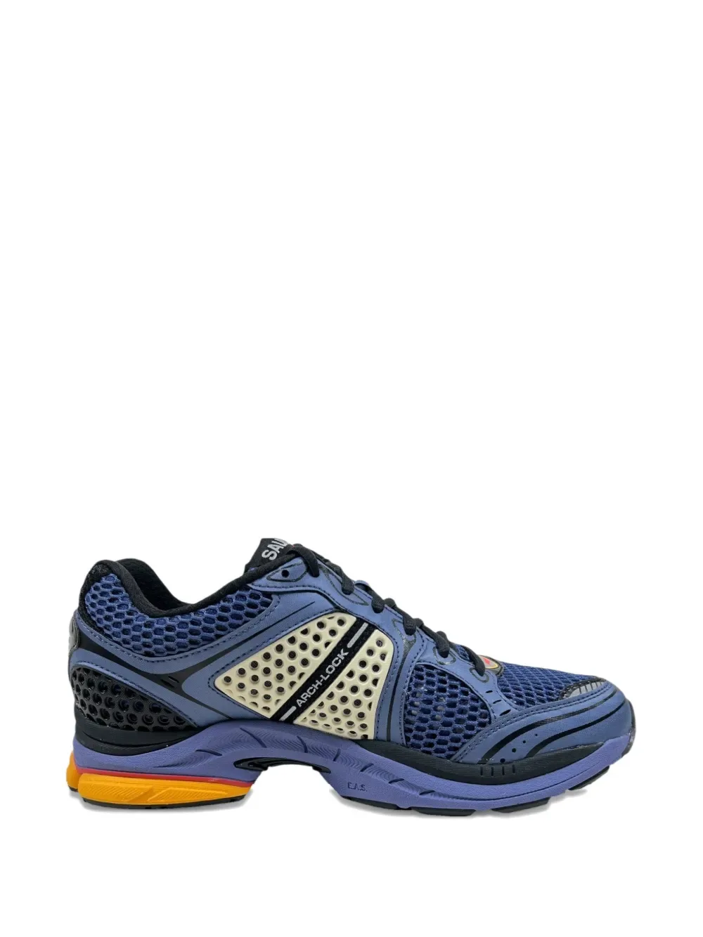 Синий сетчатый дизайн, нашивка с логотипом, шнуровка, многослойный дизайн, контрастная подошва