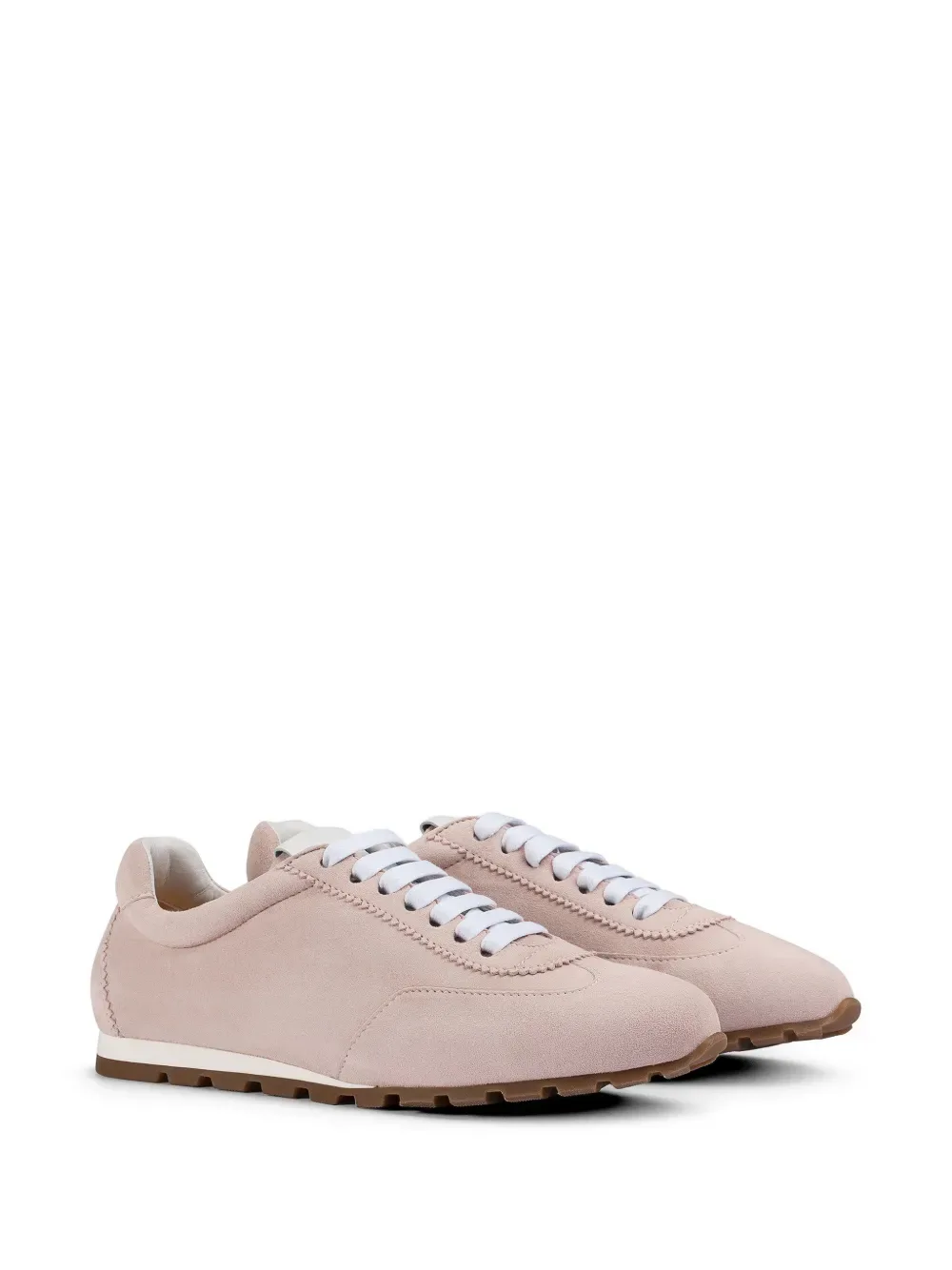 Пудрово-розовые замшевые кроссовки с шнуровкой, многослойным дизайном, прострочкой и рифленой подошвой