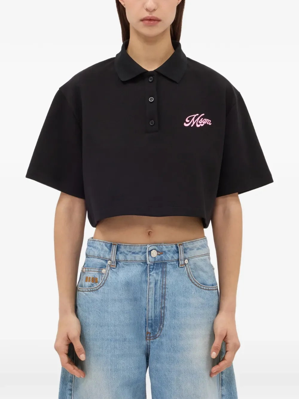 Укороченный поло с логотипом MSGM, черный