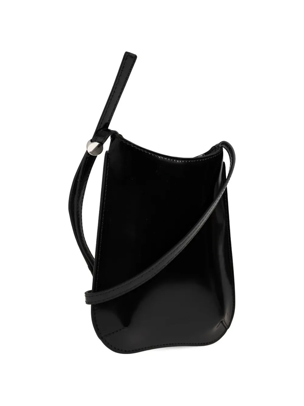 Черная топ-ручка из телячьей кожи с нашивкой-логотипом спереди