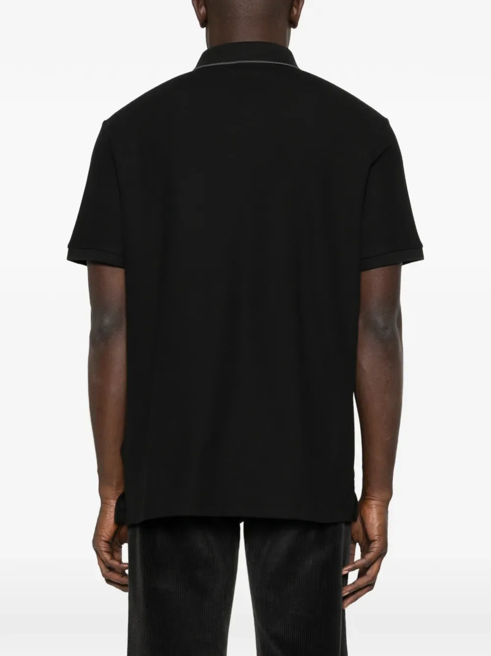 Черная футболка-поло с логотипом, воротником-поло, короткими рукавами и застежкой на пуговицы