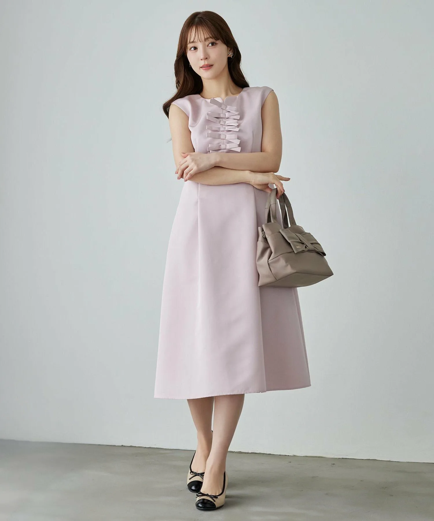Верхняя часть лифа украшена хаотичным узором из лент, что добавляет стильный штрих.