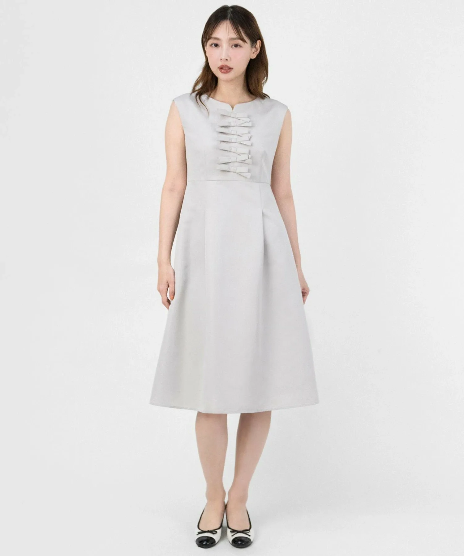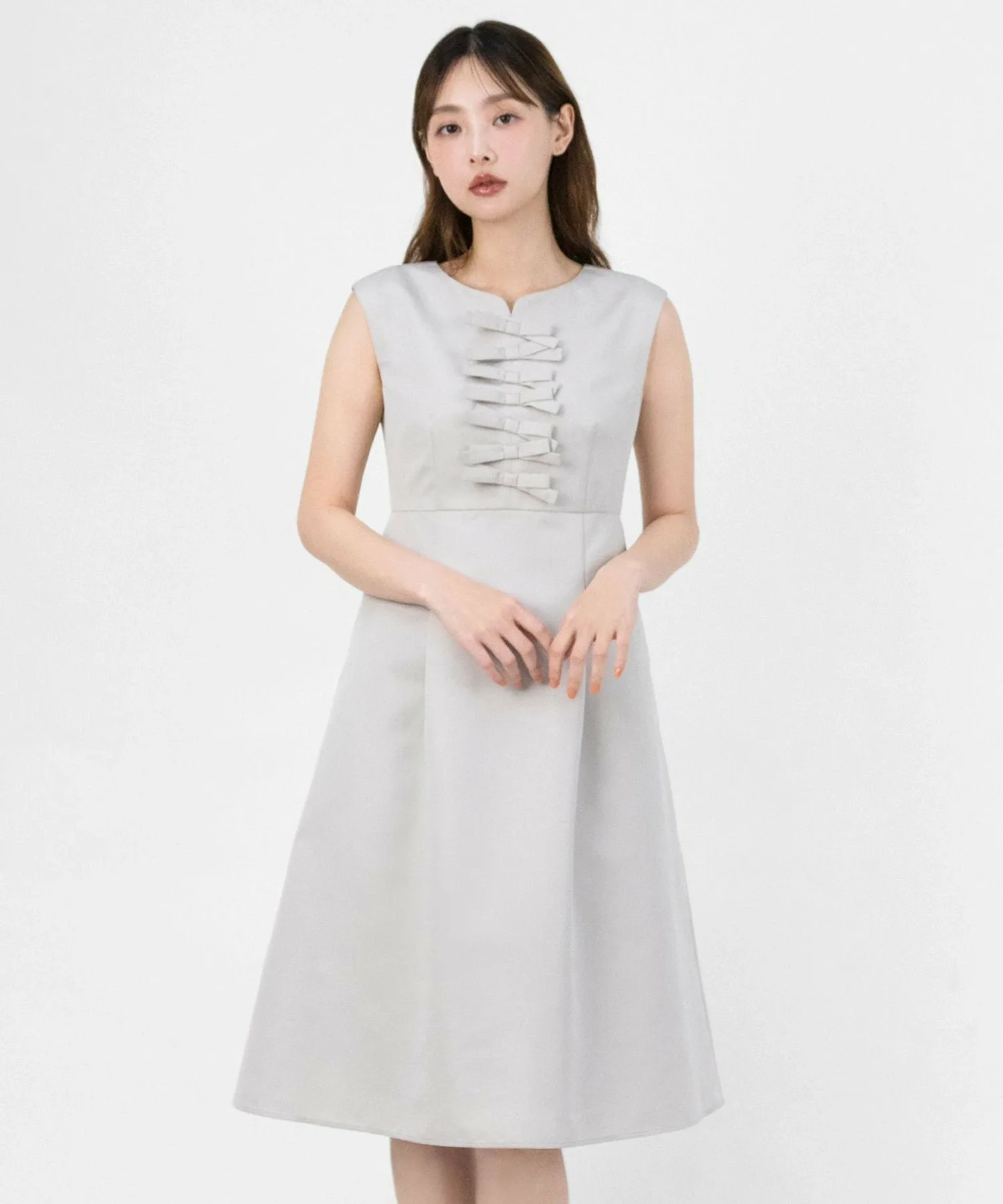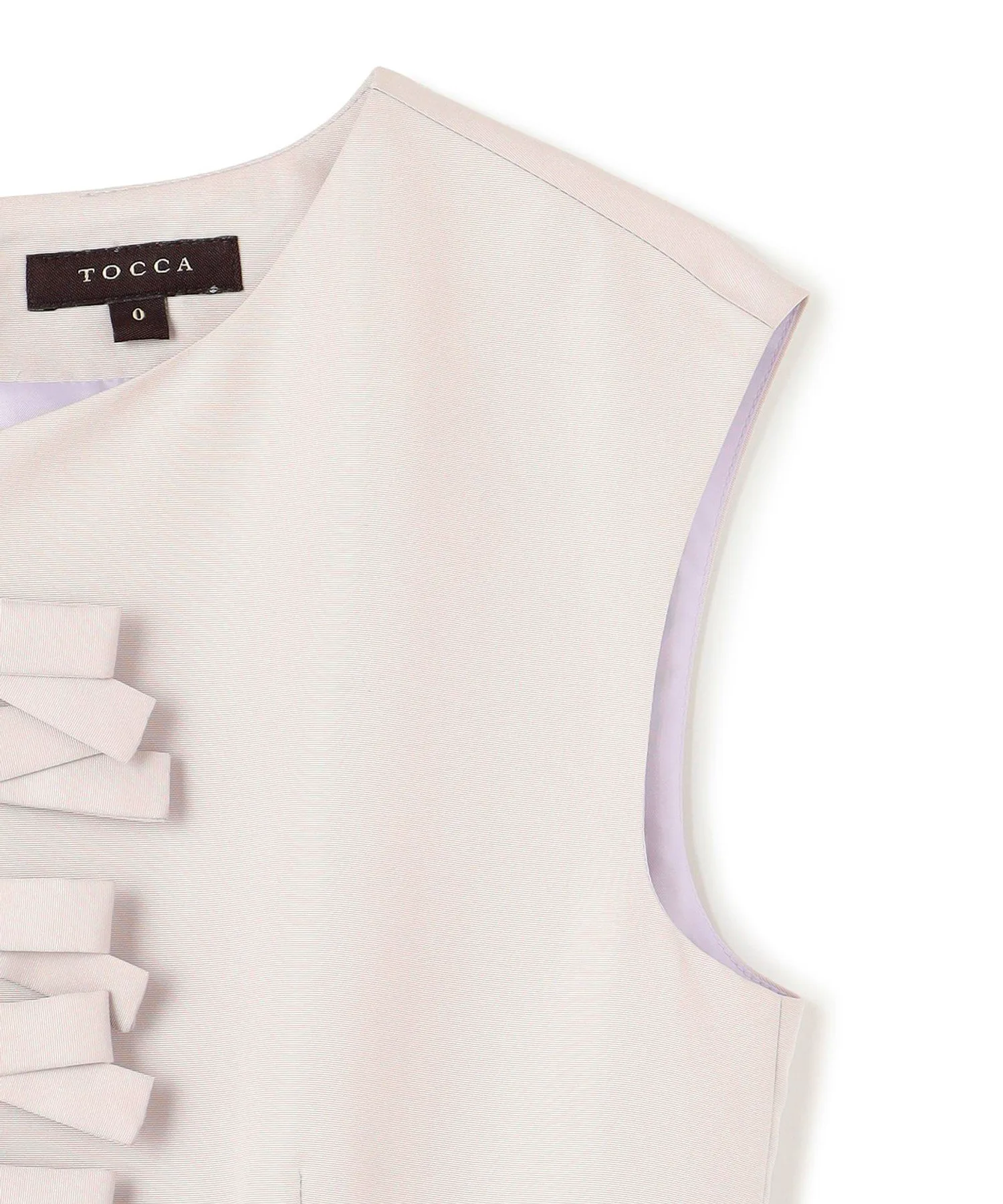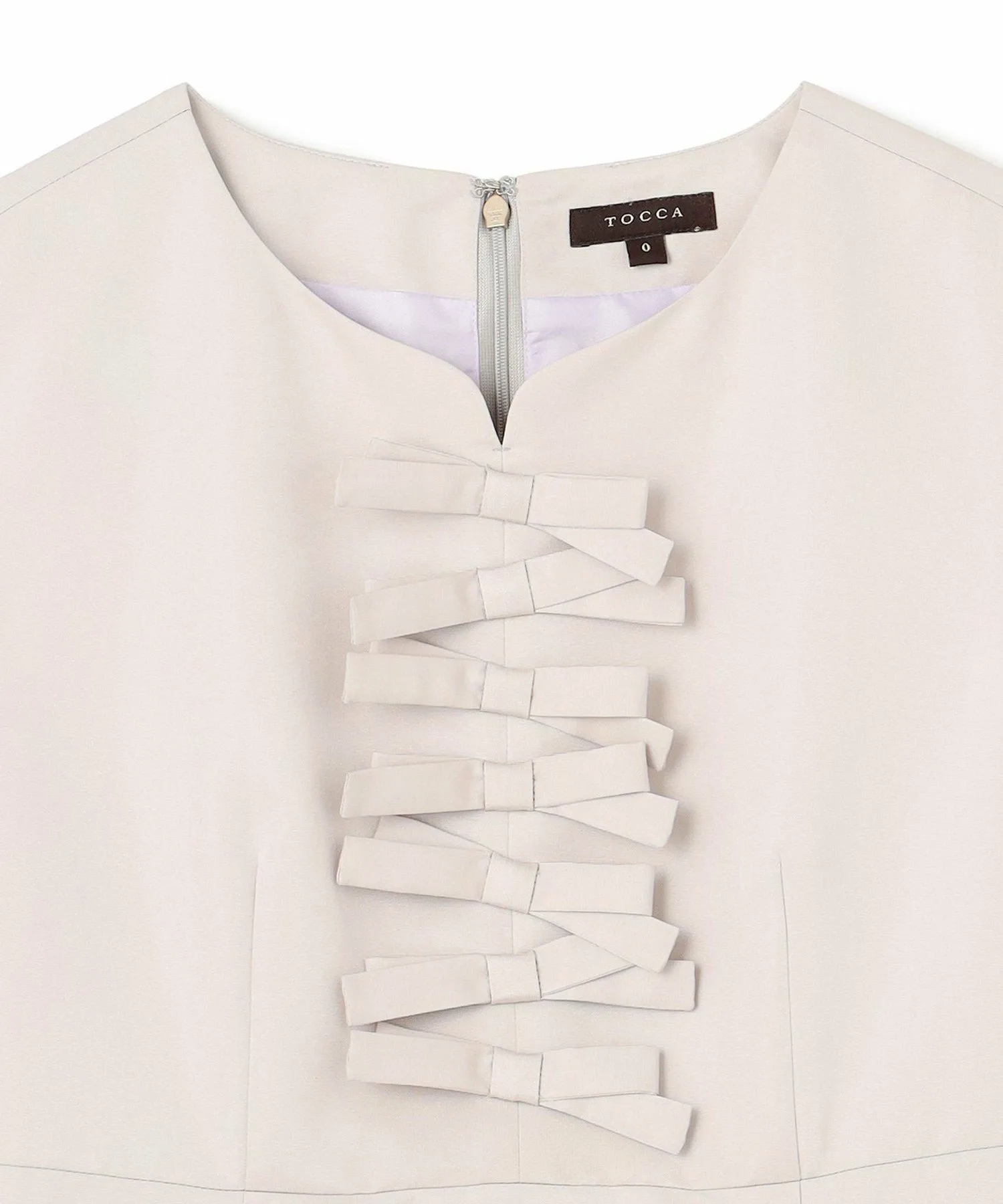 Верхняя часть лифа украшена хаотичным узором из лент, что добавляет стильный штрих.