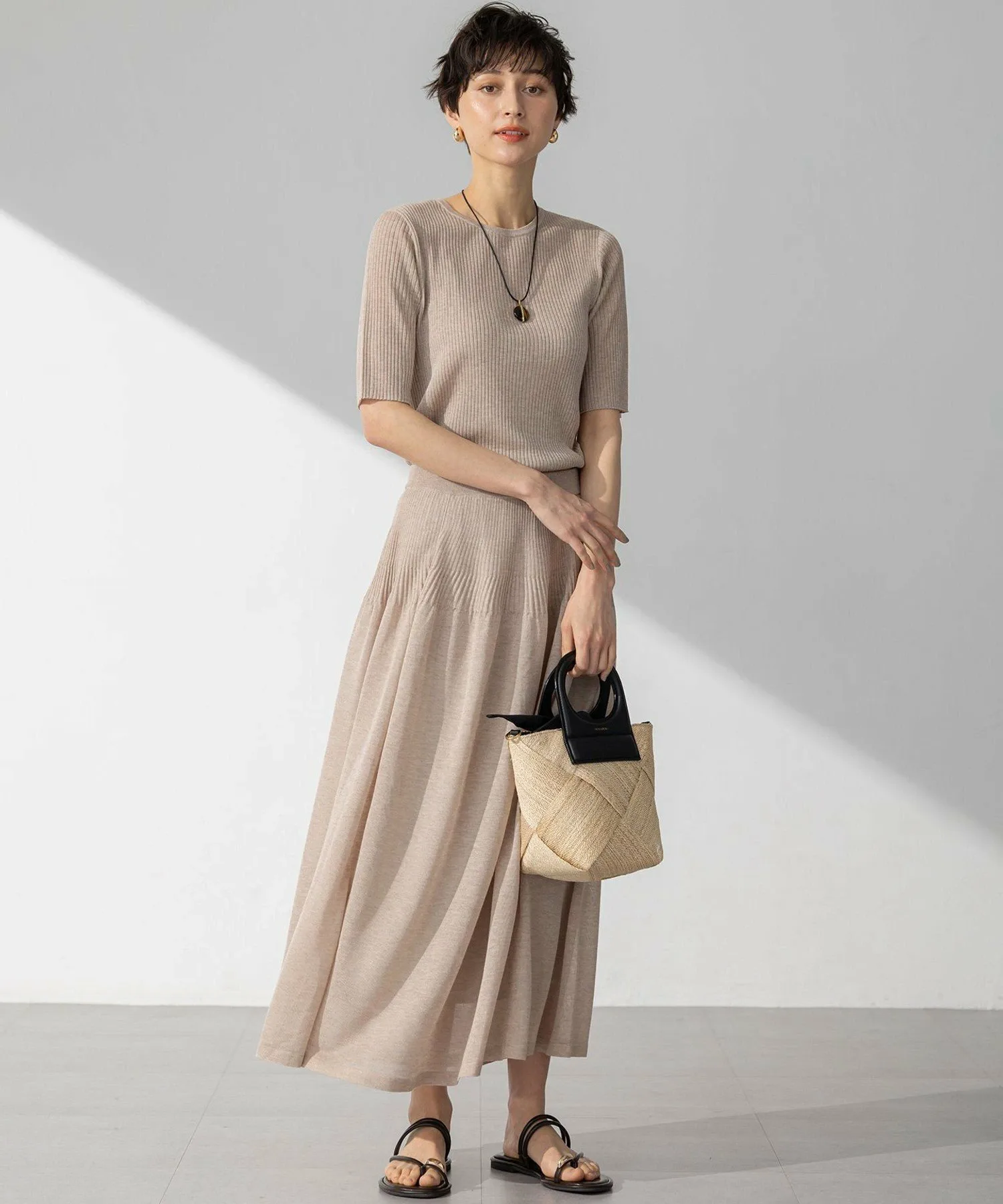 Этот трикотаж с рукавами три четверти отличается изысканной прозрачностью, но не слишком. Чистый, простой круглый вырез позволяет легко сочетать его с любым нарядом, а прозрачность делает его отличным вариантом для многослойных образов, чтобы обновить ваш повседневный стиль. Несмотря на ребристую основу, идеальный размер гарантирует, что он не будет слишком облегать тело или создавать ощущение громоздкости, что позволяет легко носить его отдельно. Доступен в трех цветах: спокойный цвет слоновой кости (#003), базовый черный (#005) и мягкий бежевый (#033).