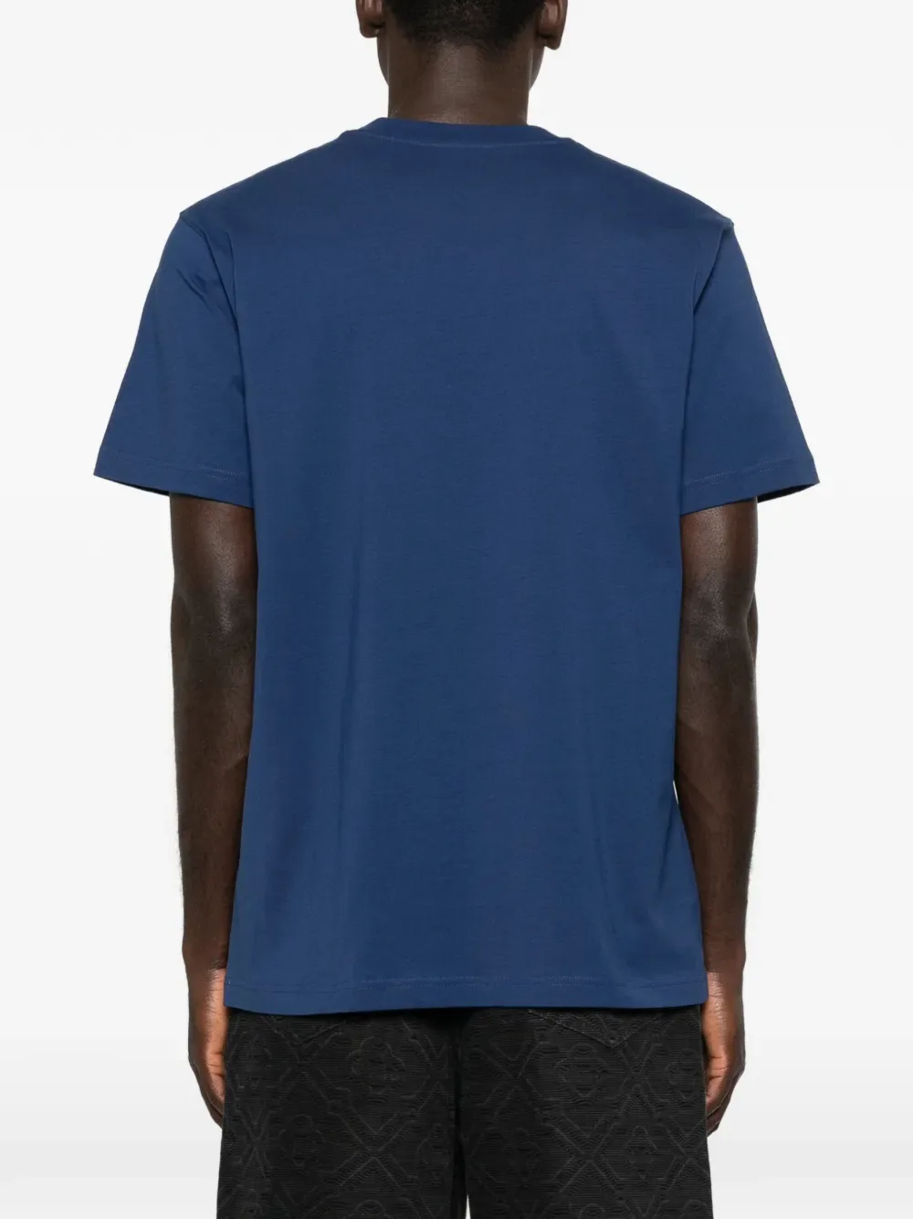 Темно-синяя футболка с круглым вырезом, логотипом и короткими рукавами