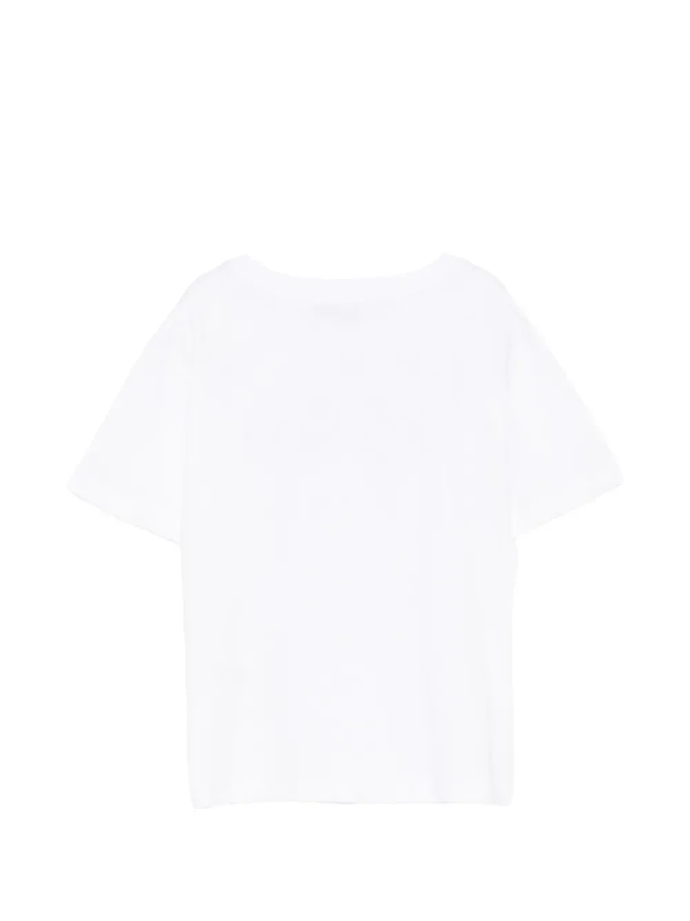Белая футболка с логотипом, круглым вырезом и короткими рукавами
