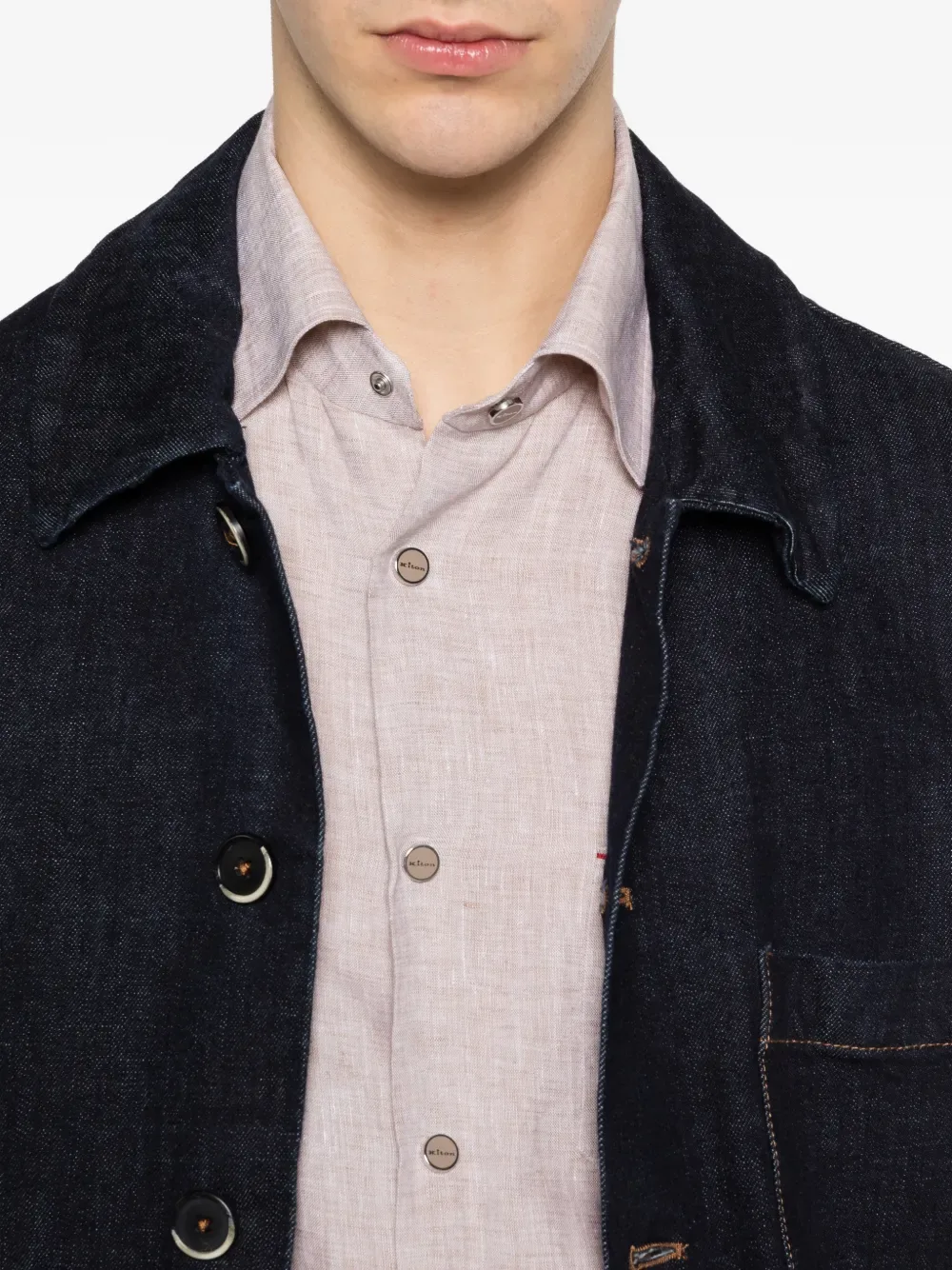 Бежевый, нагрудный карман, застежка на пуговицы, длинные рукава, манжеты на пуговицах