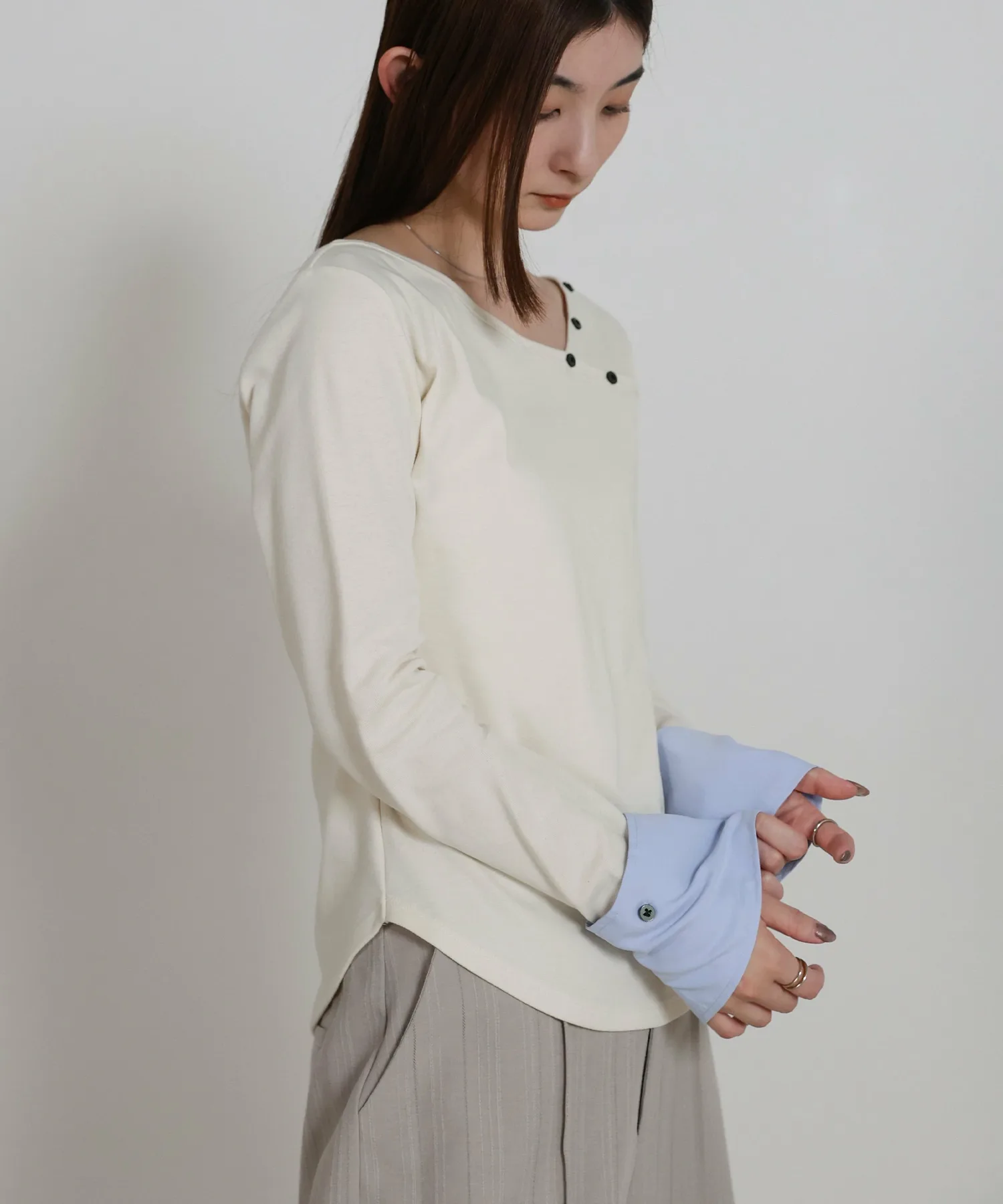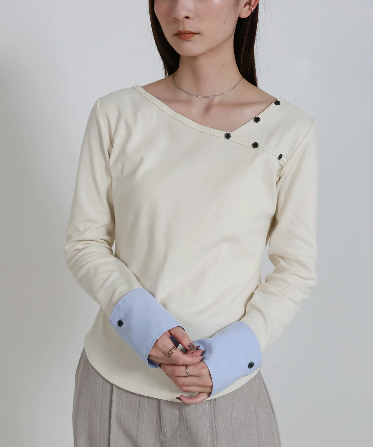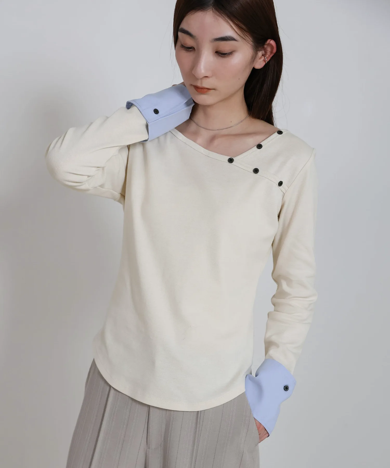 Этот топ имеет декоративную вставку, которая ненавязчиво подчеркивает рукава. Она создает иллюзию многослойности, добавляя изысканности любому образу. Манжеты застегиваются на пуговицы, которые можно снять для более индивидуального стиля. Каждая деталь тщательно проработана, чтобы вы могли менять свой стиль в зависимости от настроения. Компактный силуэт рекомендуется сочетать с широкими брюками или длинной юбкой. Изображения товара являются образцом, поэтому характеристики, отделка и размер фактического изделия могут немного отличаться от показанных. Благодарим за понимание. В связи с производственными причинами возможны задержки доставки или снятие с производства. Сроки доставки могут варьироваться в зависимости от продавца. Цвета могут выглядеть по-разному в зависимости от настроек вашего монитора, а также производителя и модели вашего мобильного телефона. В связи с производственным процессом возможны незначительные вариации цвета и размера. Благодарим за понимание.