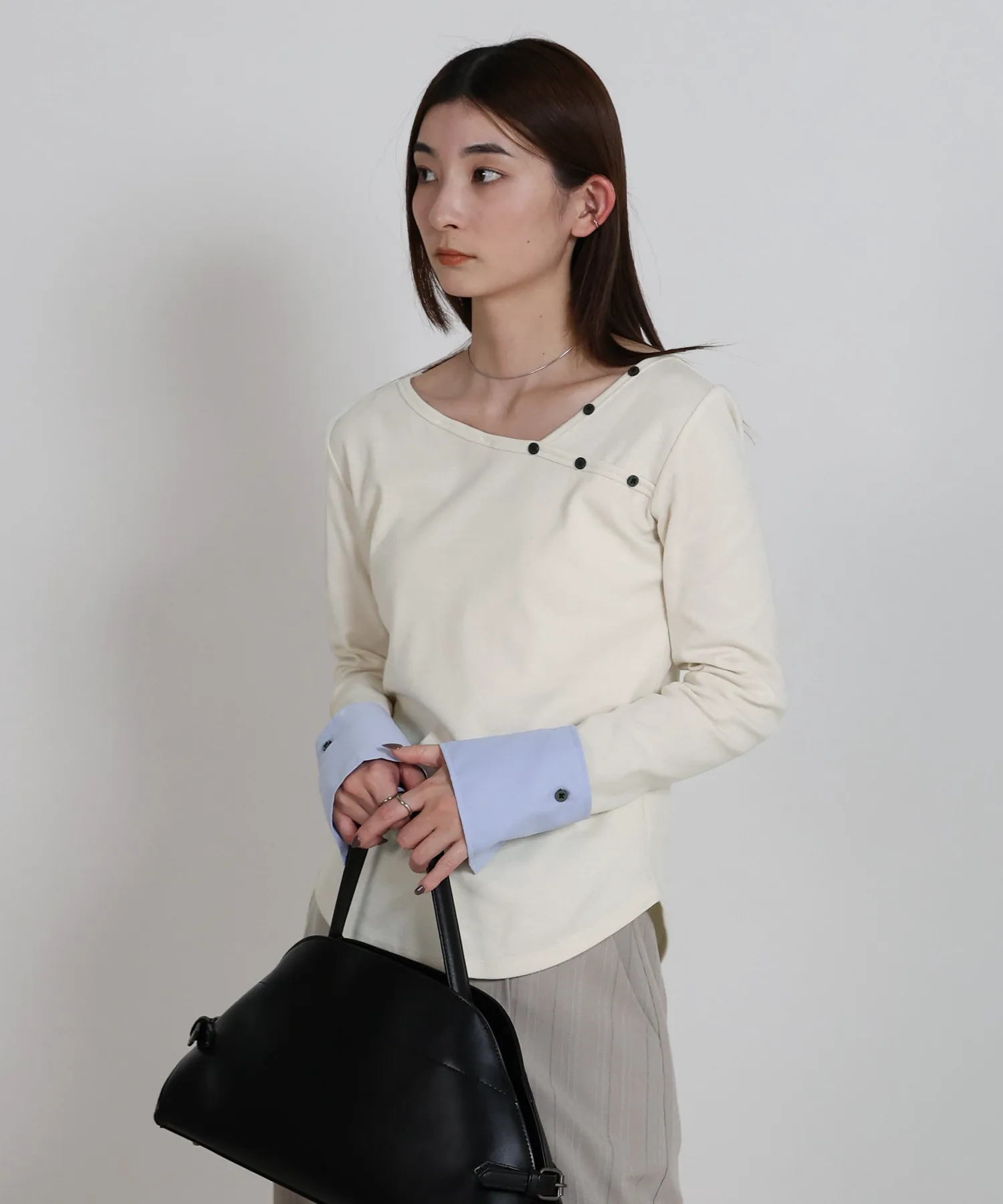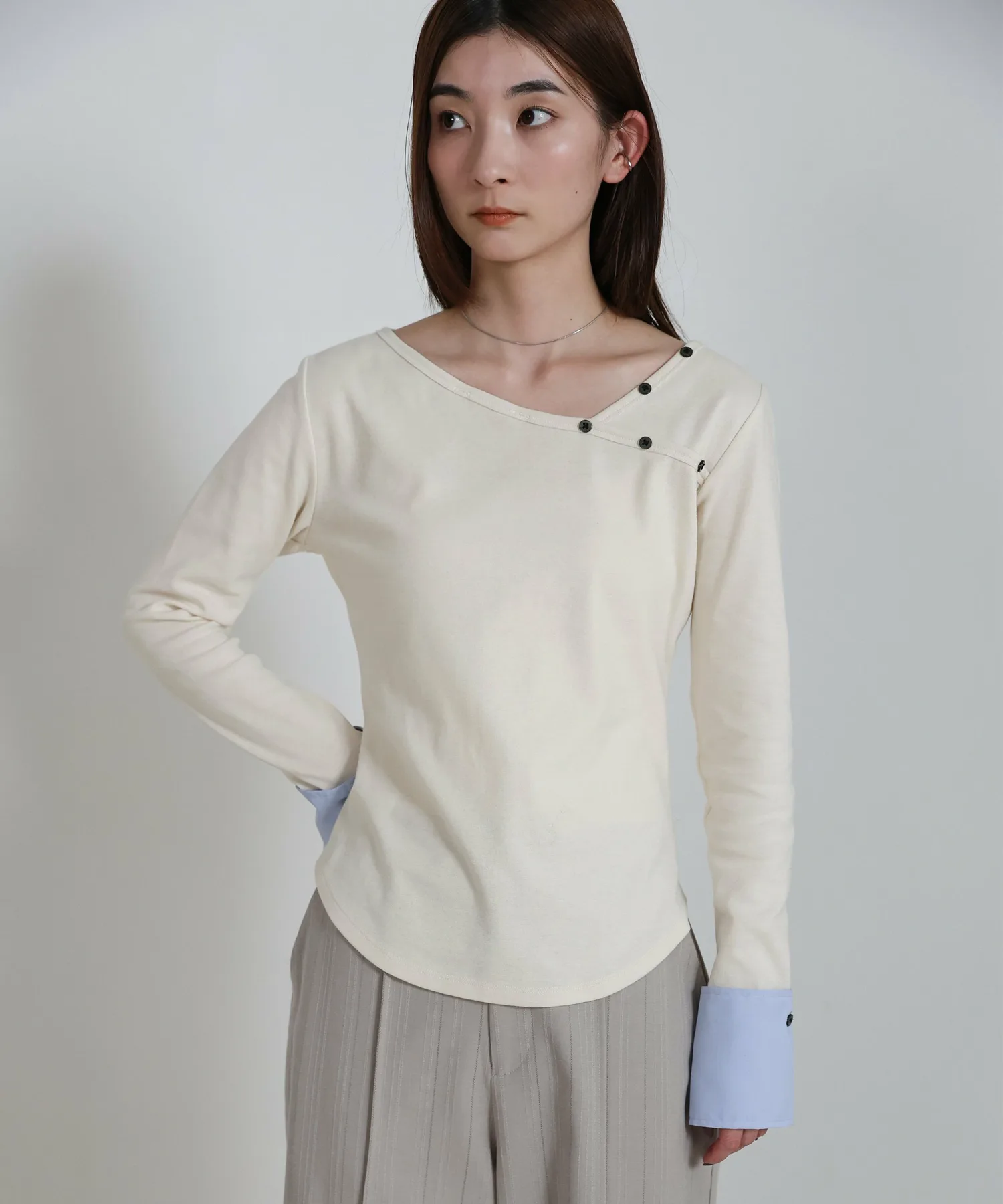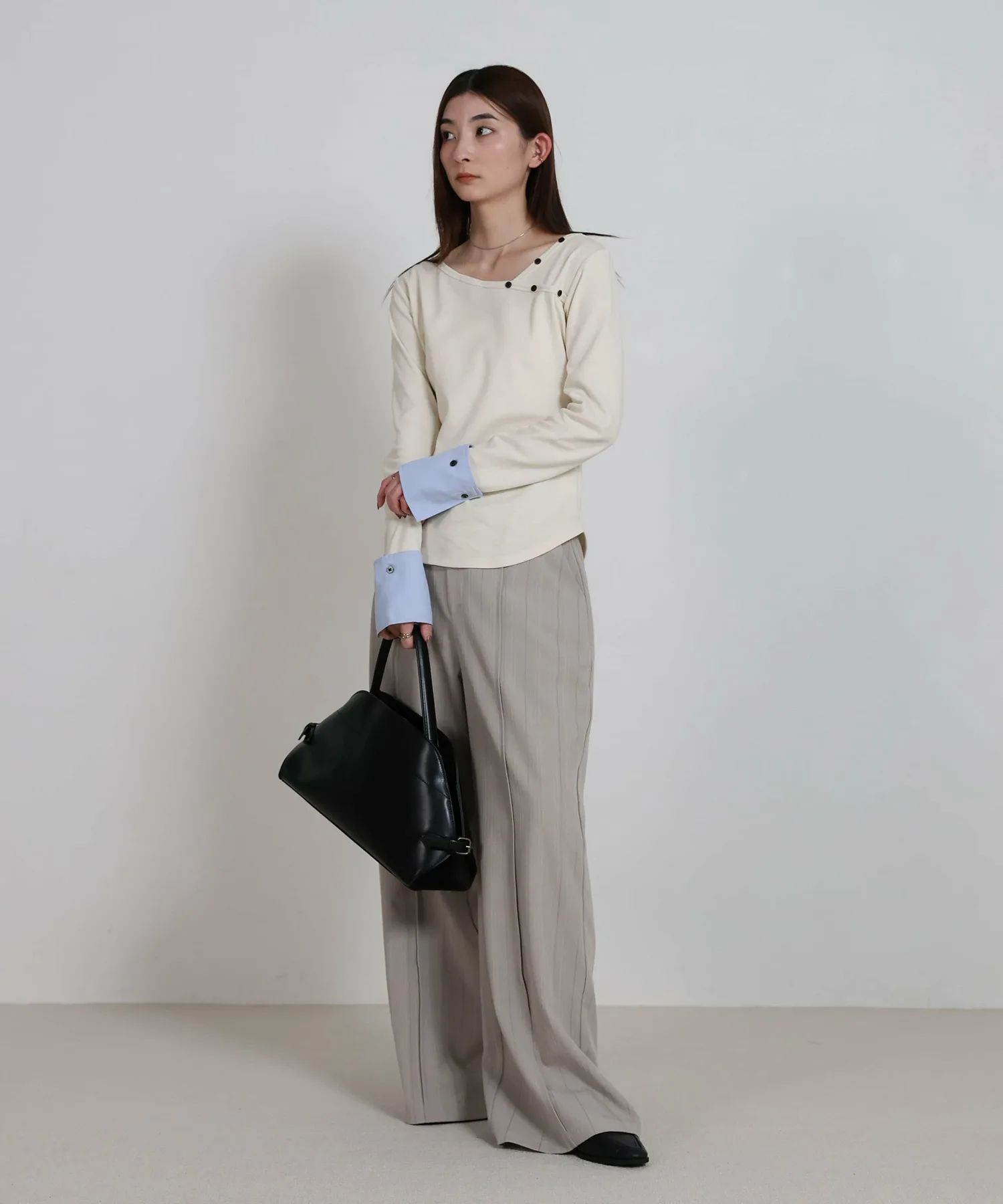 Этот топ имеет декоративную вставку, которая ненавязчиво подчеркивает рукава. Она создает иллюзию многослойности, добавляя изысканности любому образу. Манжеты застегиваются на пуговицы, которые можно снять для более индивидуального стиля. Каждая деталь тщательно проработана, чтобы вы могли менять свой стиль в зависимости от настроения. Компактный силуэт рекомендуется сочетать с широкими брюками или длинной юбкой. Изображения товара являются образцом, поэтому характеристики, отделка и размер фактического изделия могут немного отличаться от показанных. Благодарим за понимание. В связи с производственными причинами возможны задержки доставки или снятие с производства. Сроки доставки могут варьироваться в зависимости от продавца. Цвета могут выглядеть по-разному в зависимости от настроек вашего монитора, а также производителя и модели вашего мобильного телефона. В связи с производственным процессом возможны незначительные вариации цвета и размера. Благодарим за понимание.