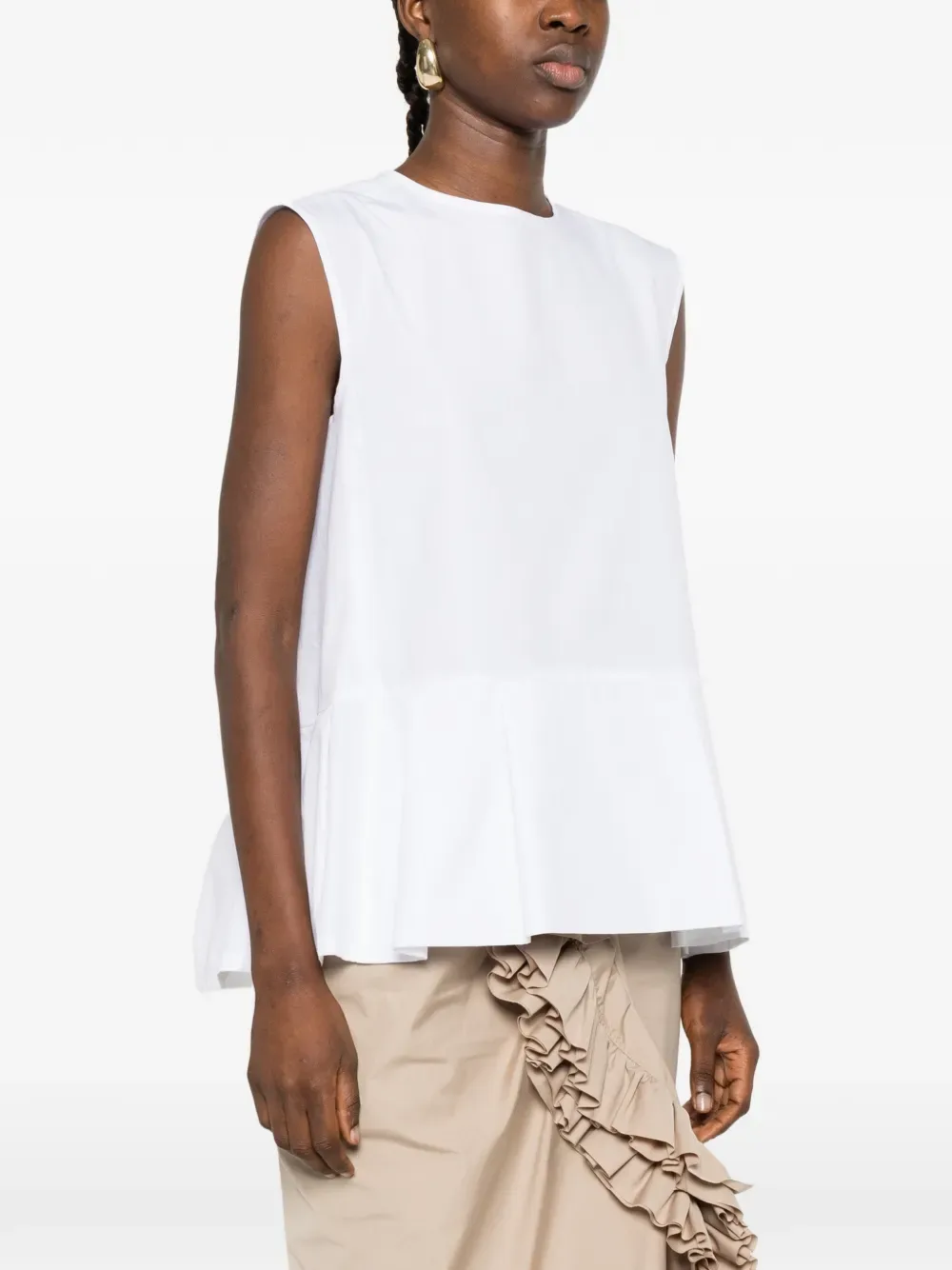 Белый топ без рукавов с круглым вырезом и плиссированным подолом