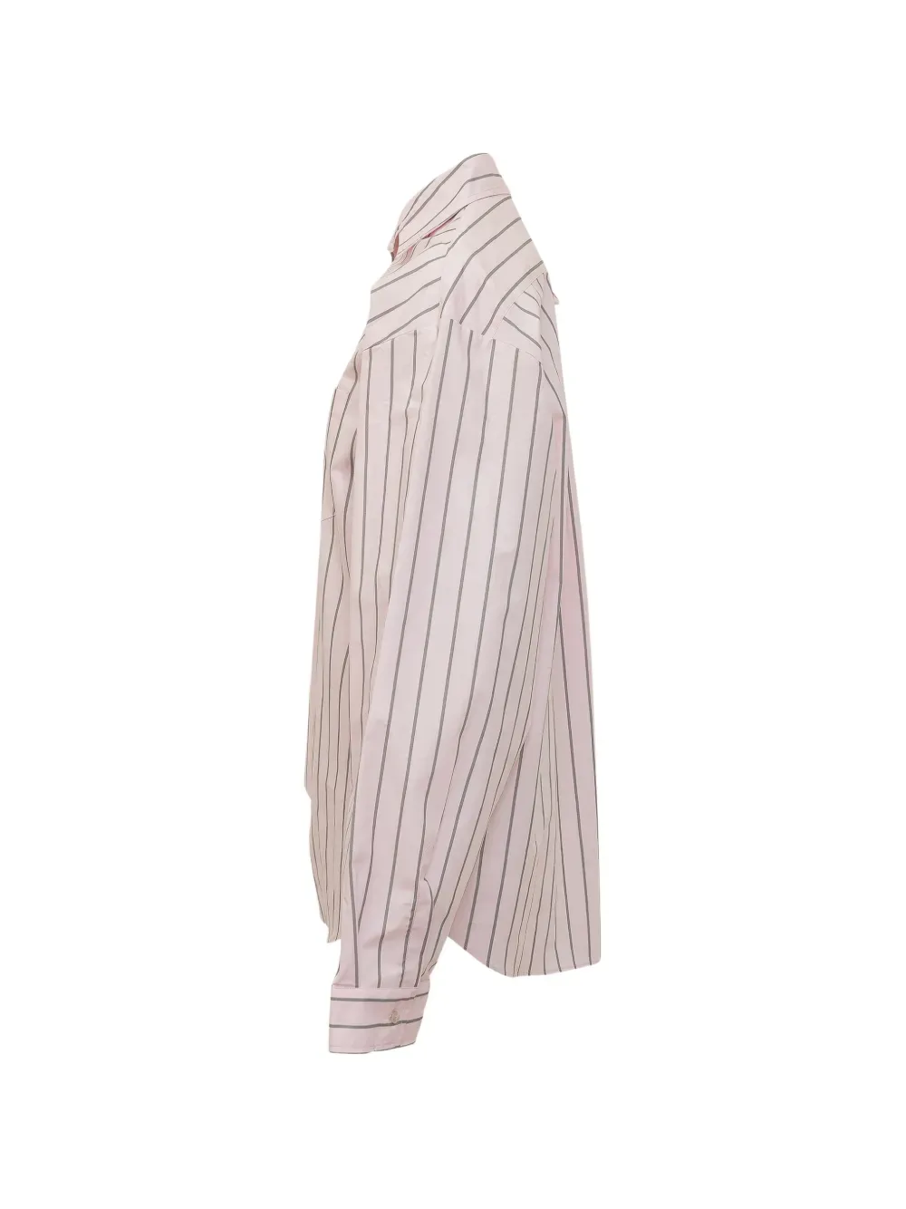 Розовая полосатая хлопковая рубашка с нагрудным карманом, застежкой на пуговицы и асимметричным подолом