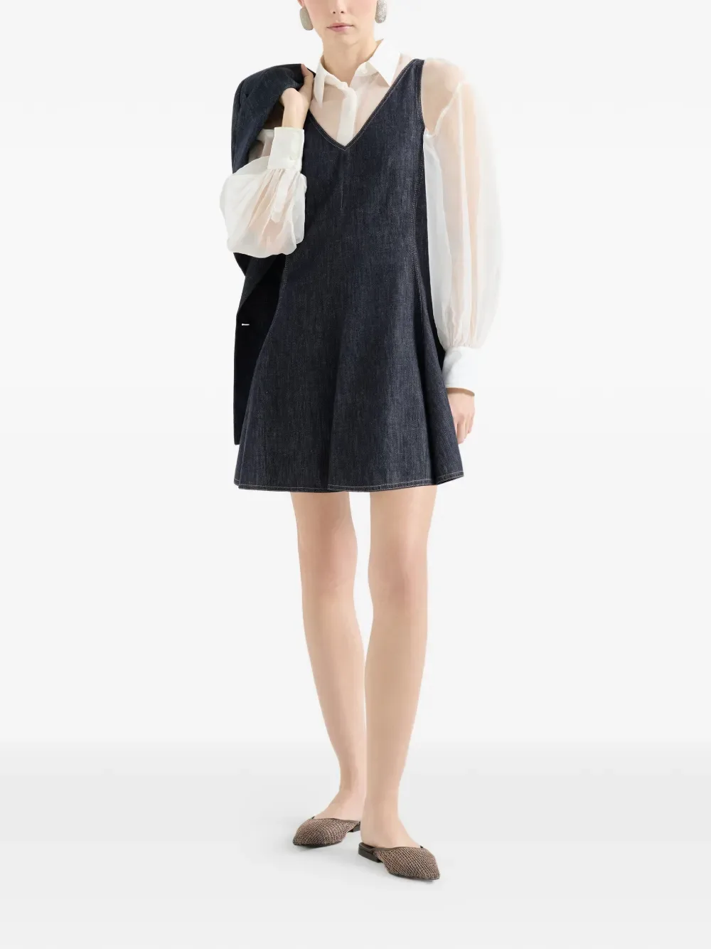 Мини-платье из хлопкового твила с эффектом денима Brunello Cucinelli, синий