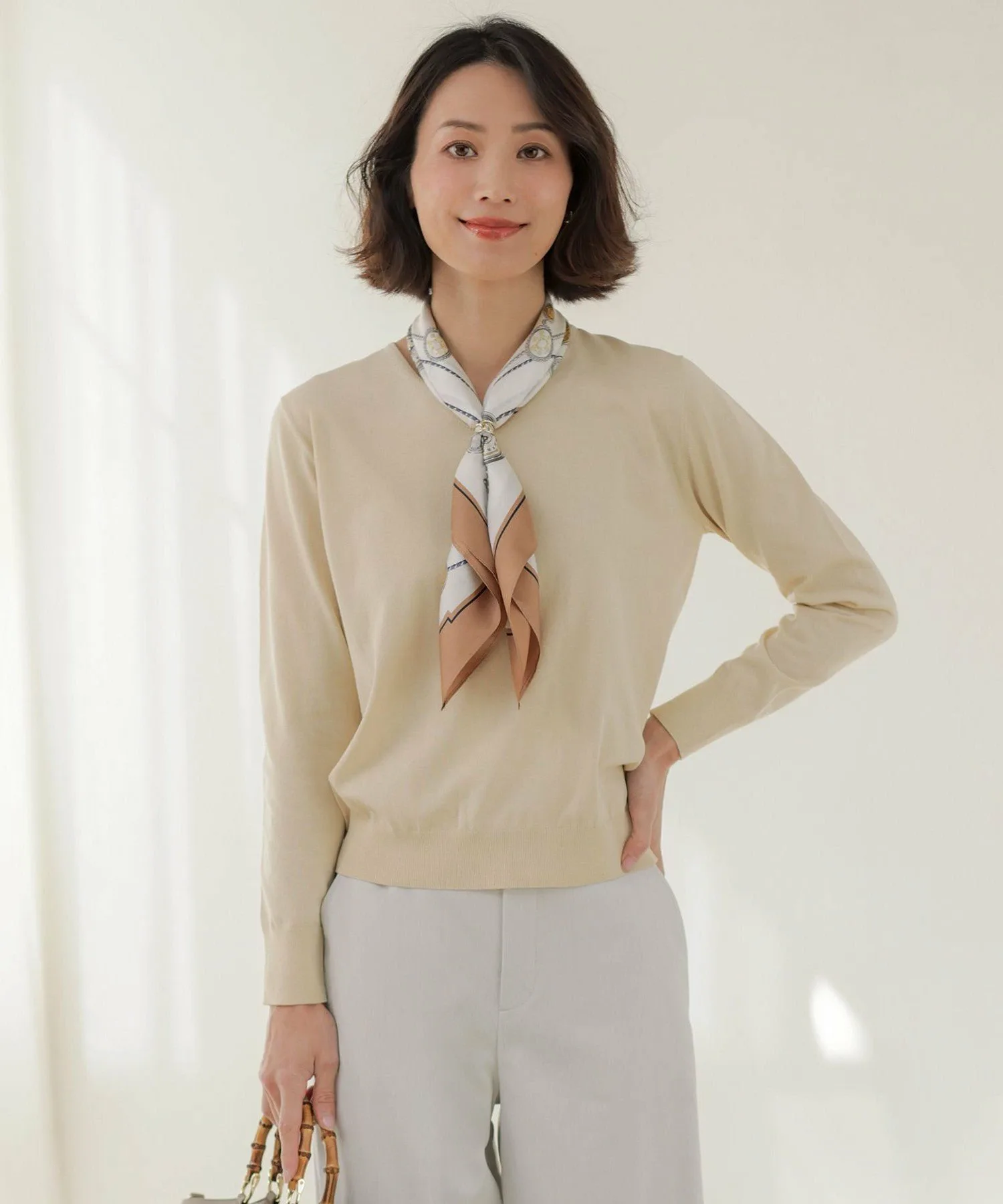 Дизайн: Этот трикотаж имеет не слишком глубокий V-образный вырез, который выгодно подчеркивает лицо. Созданный на основе популярной осенне-зимней коллекции, этот фасон добавляет весенне-летней легкости. V-образный вырез выгодно подчеркивает декольте, сохраняя при этом изысканный вид, что делает его идеальным выбором для утонченных женщин. Этот универсальный базовый фасон можно носить под жакетом или как повседневную вещь. Доступен в пяти цветах: светло-бежевый (#002) для мягкого, естественного ощущения; розовый (#012) для изысканного образа; желтый (#040) для весеннего настроения; бирюзовый (#072) для чистого, освежающего оттенка; и темно-синий (#075) для изысканного, универсального образа.