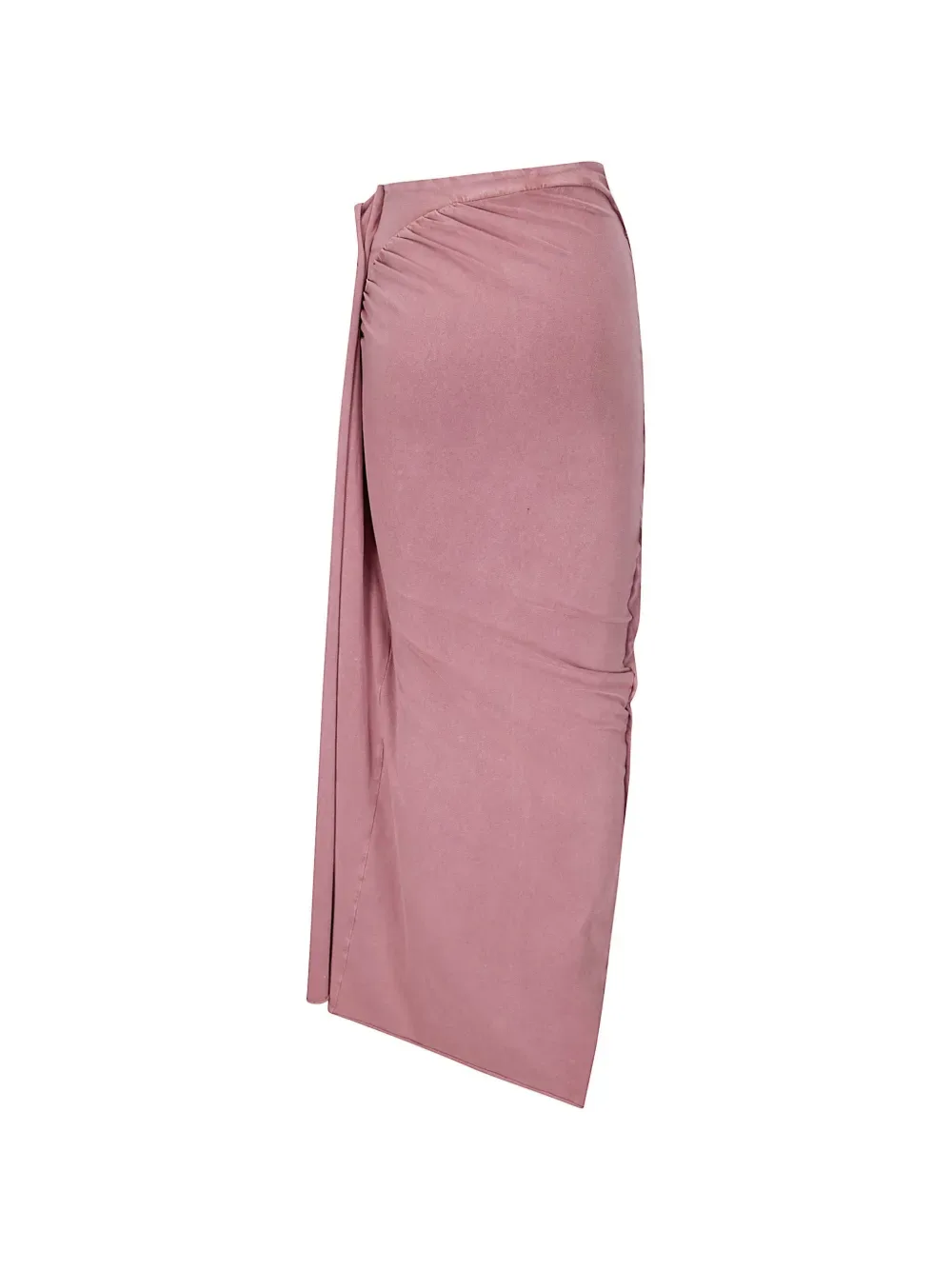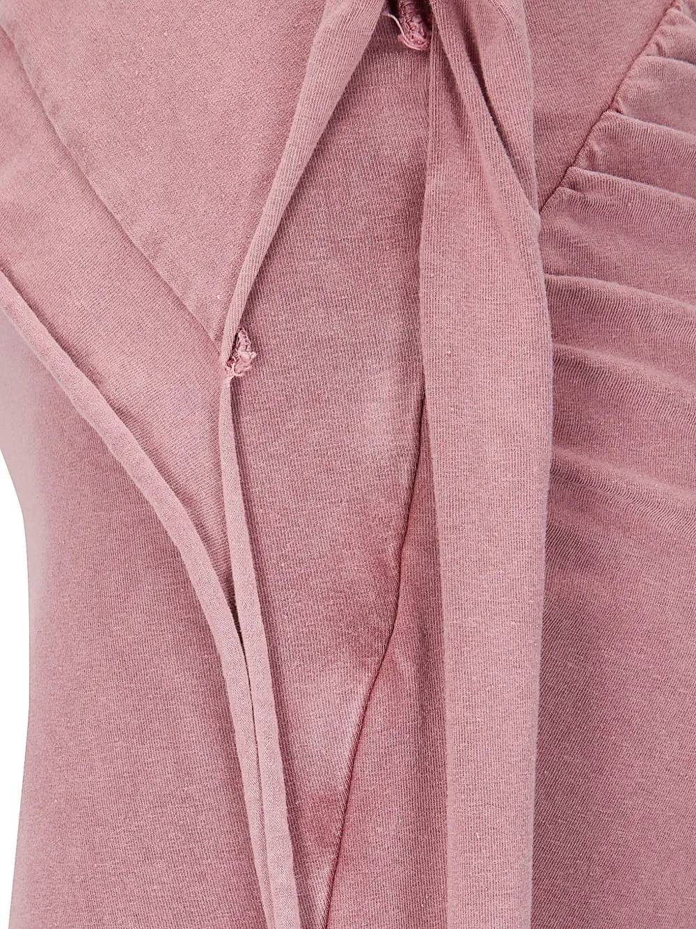 Розовое макси-платье с присборенными деталями и разрезом