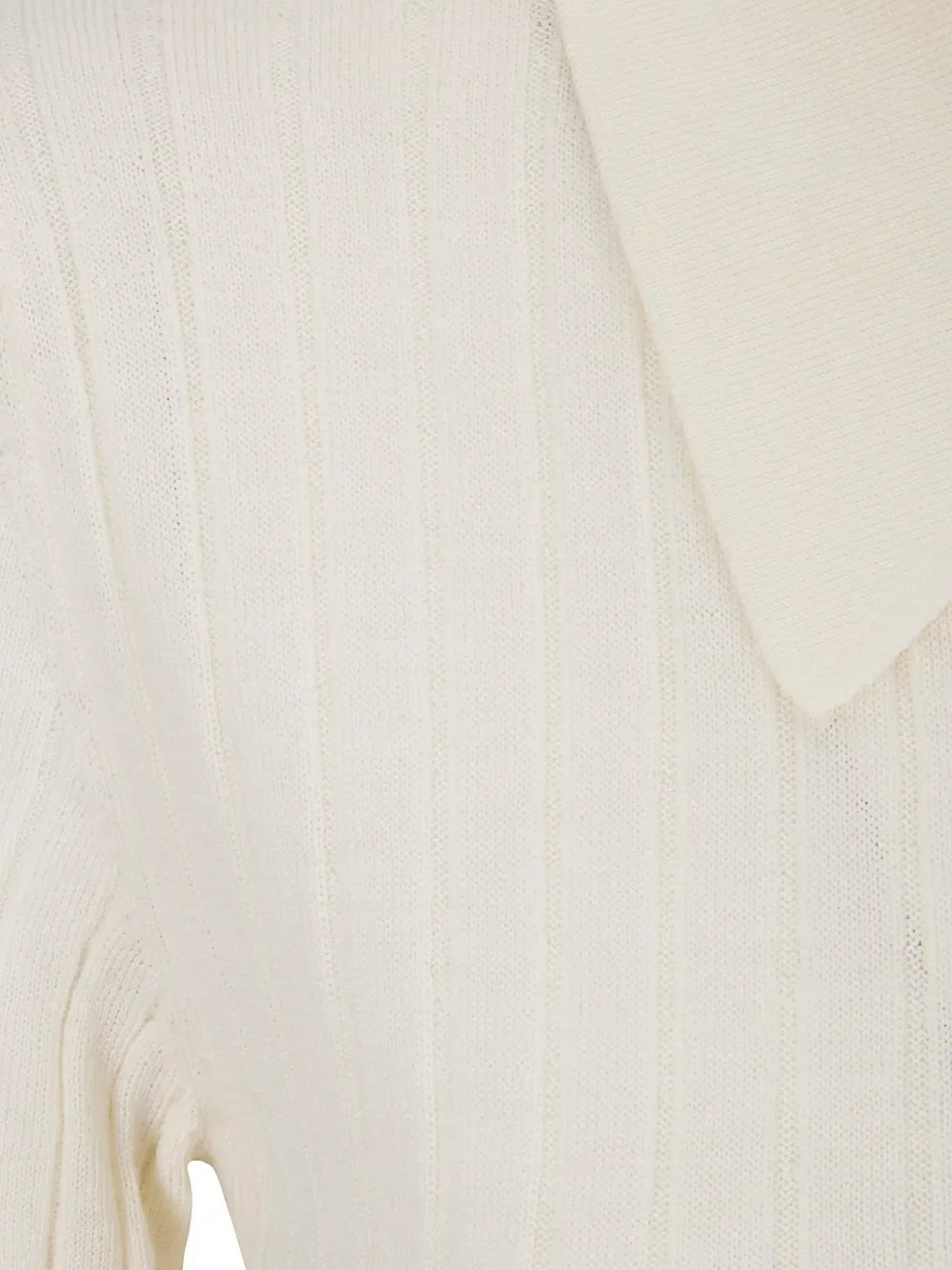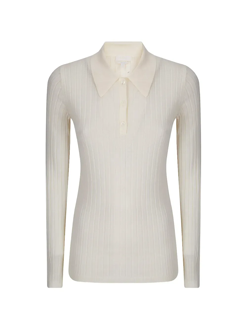 Рубашка-поло из ребристого трикотажа цвета «оф-вайт» с воротником, застежкой на пуговицы спереди, длинными рукавами, шерсть