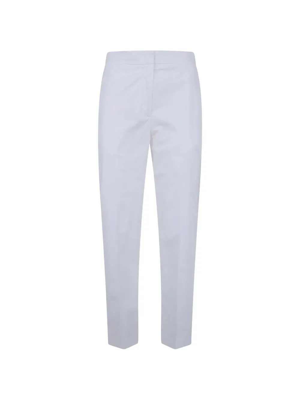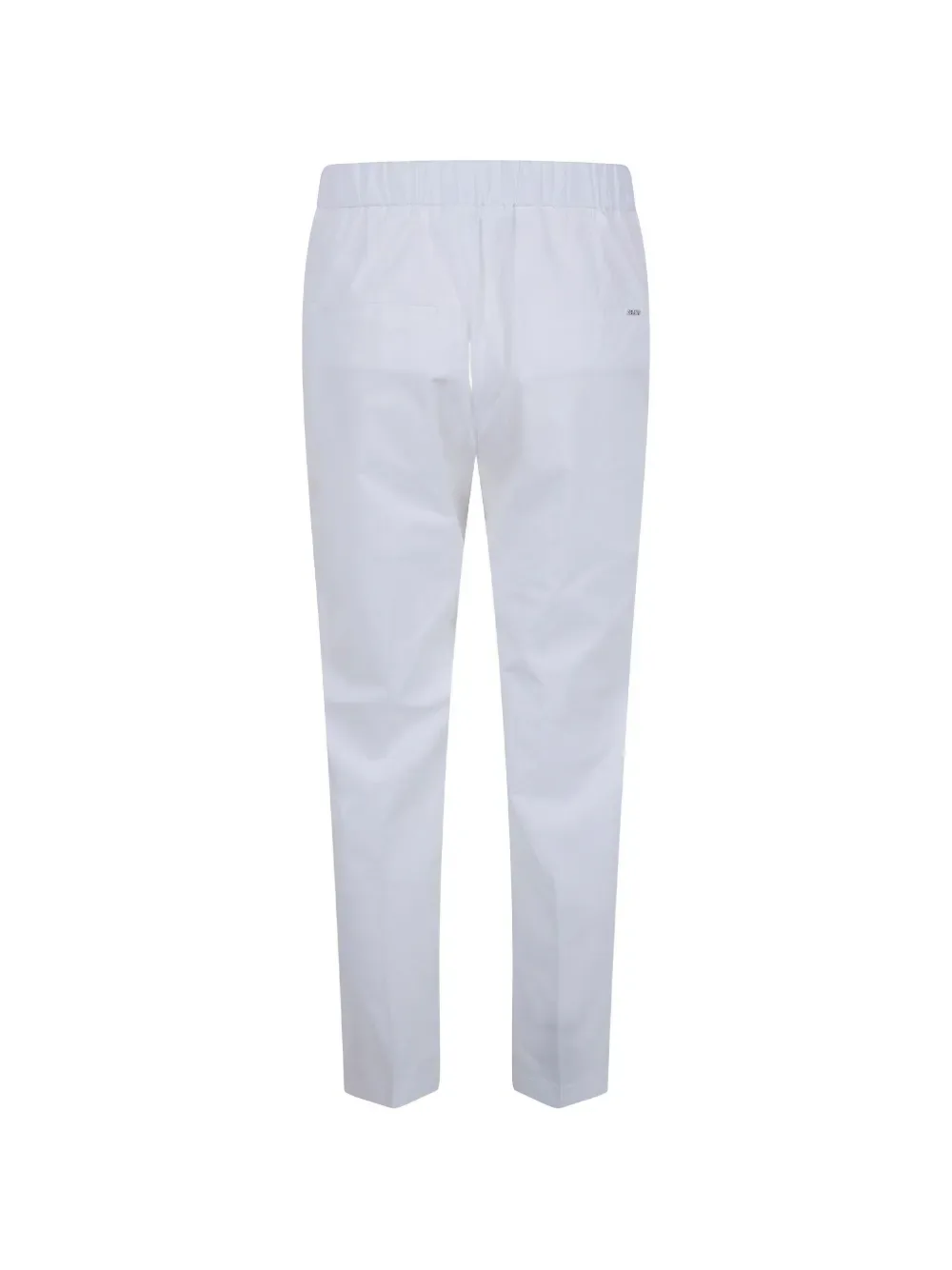 Белый цвет, эластичный пояс с логотипом, прямой крой, стандартная посадка, два задних прорезных кармана