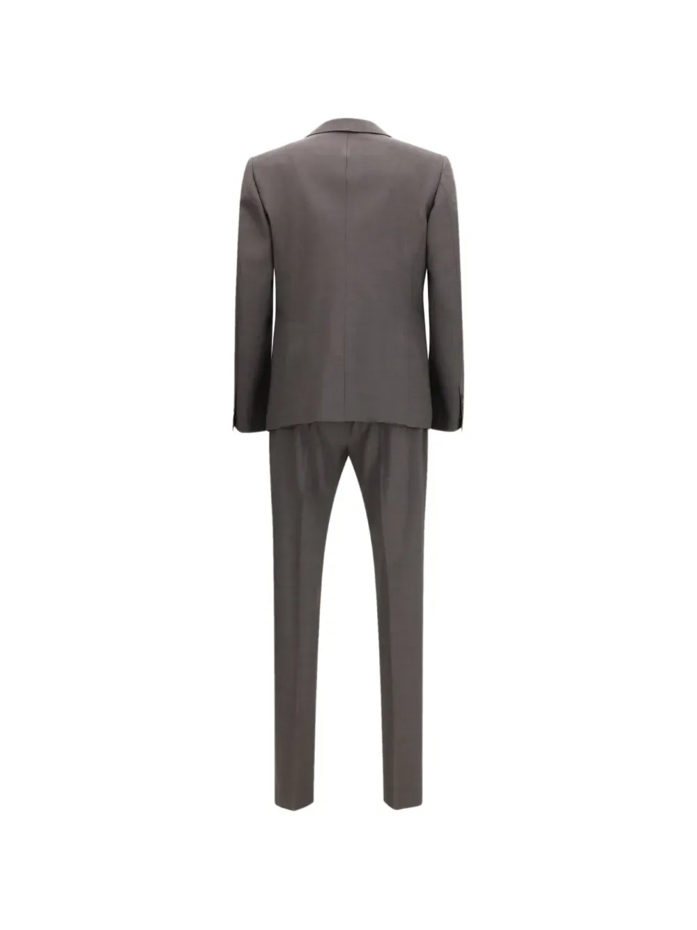 Серый двухпредметный комплект с застежкой на пуговицы, накладными карманами и шлевками для ремня