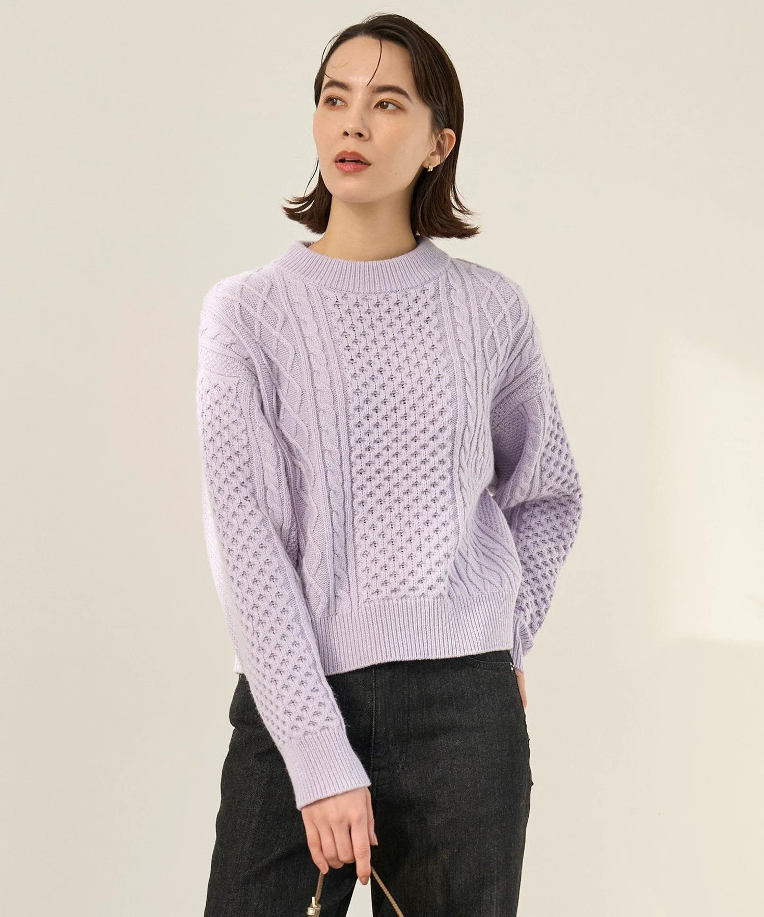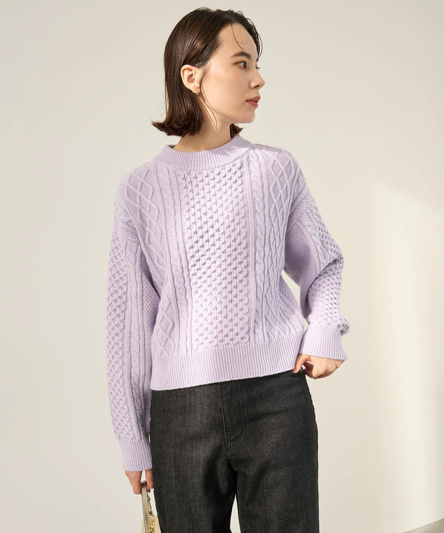 Дизайн: Этот пуловер выполнен в классическом арановом стиле. Просторный воротник-стойка и укороченный широкий силуэт создают модный образ. Он легко сочетается с любыми брюками и рекомендуется для многослойных образов.