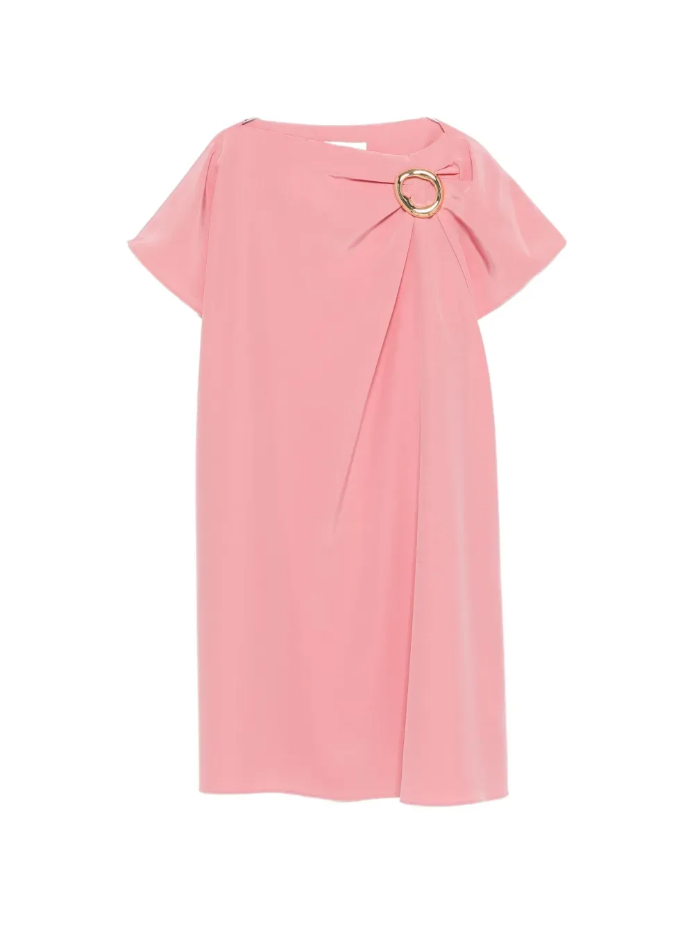 Фурнитура цвета розового золота, драпировка, круглый вырез, короткие рукава