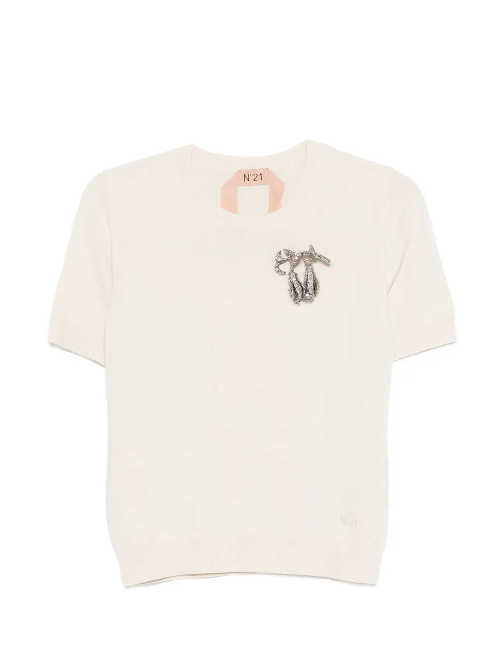 Футболка с брошей Nº21, бежевый