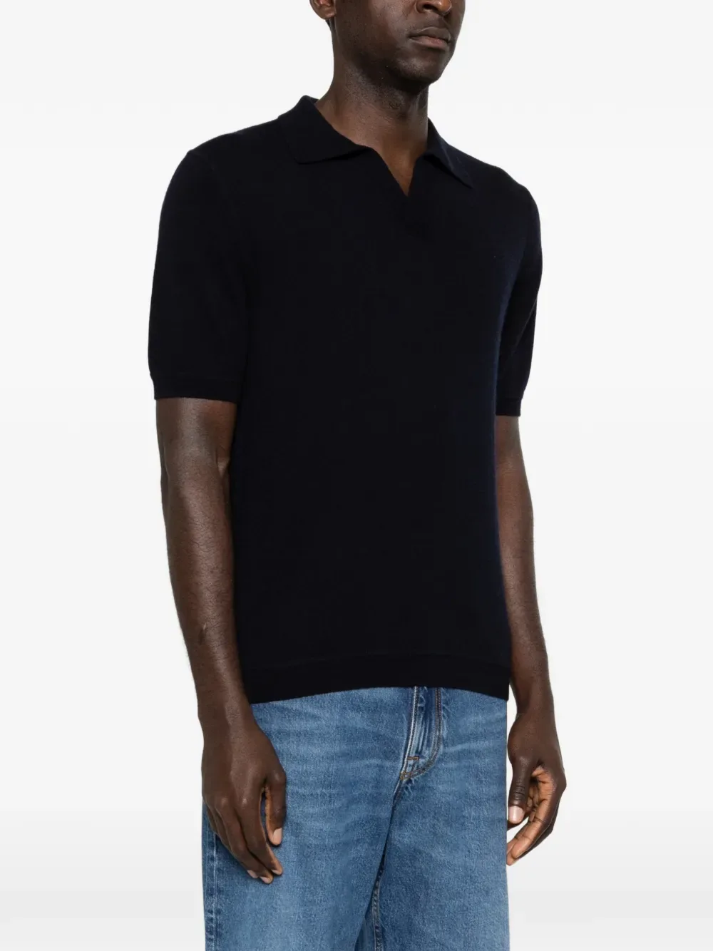 Поло с короткими рукавами и воротником синего цвета