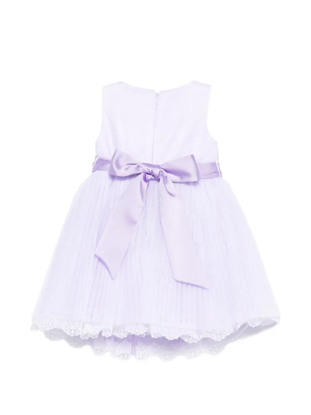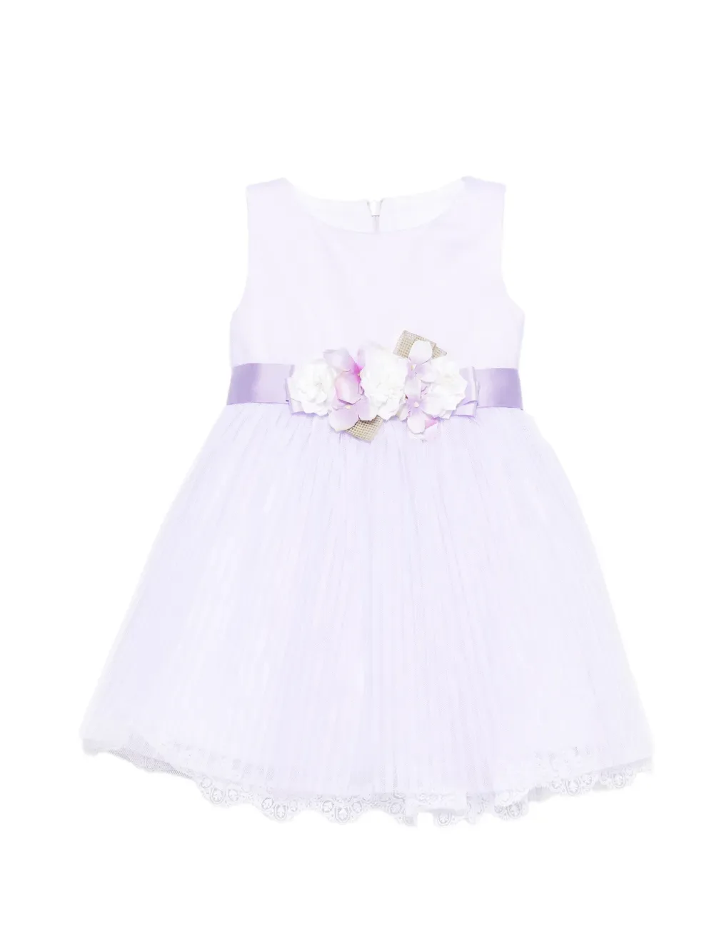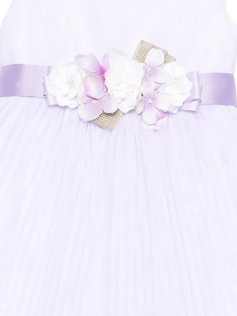 Светло-фиолетовая с цветочными аппликациями, бантом и кружевной отделкой