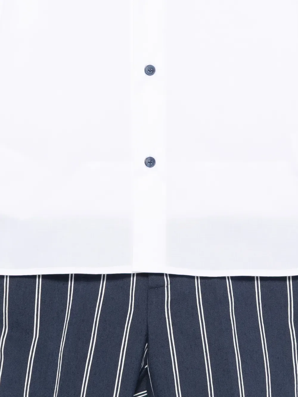 Белая и голубая рубашка в полоску с бантом, застежкой на пуговицы и длинными рукавами