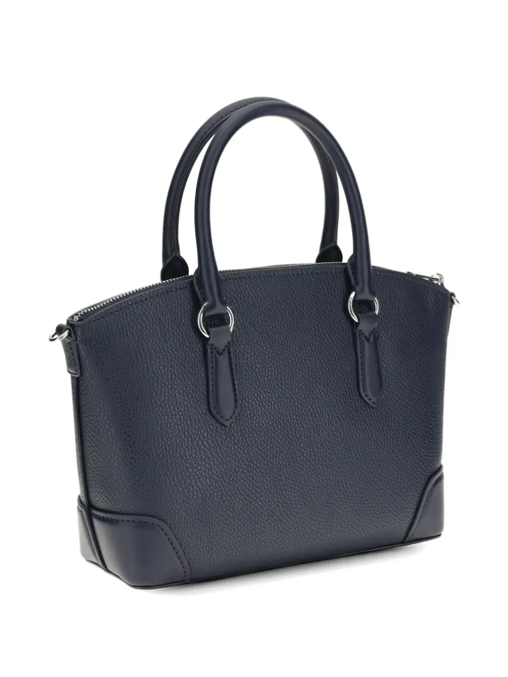 Синие верхние ручки, застежка-молния, фурнитура серебристого оттенка, съемный ремень