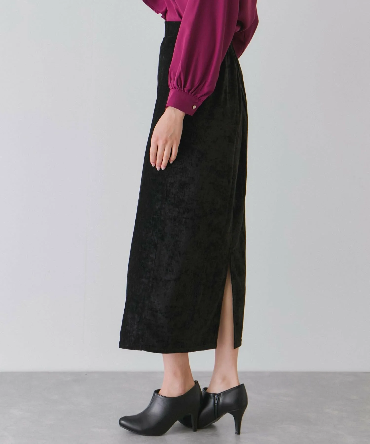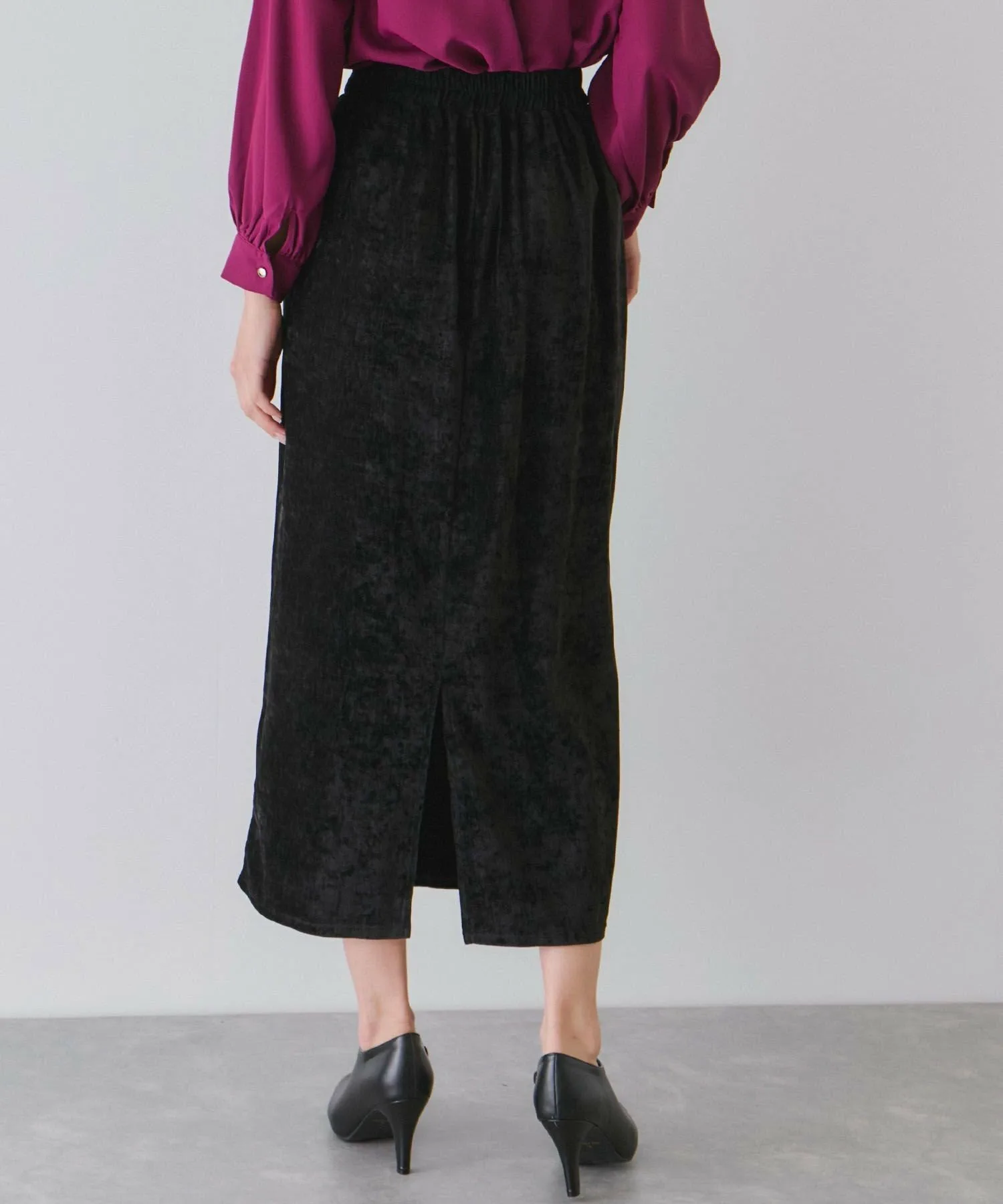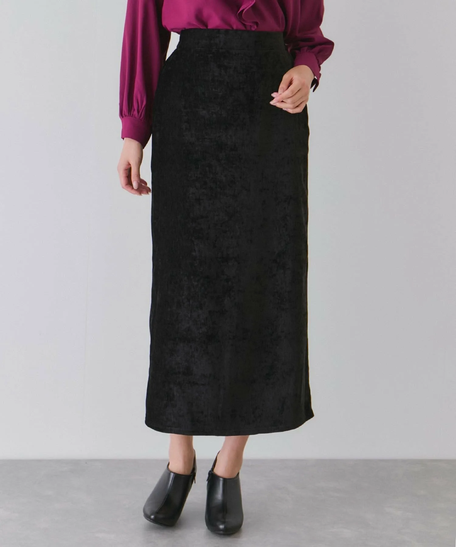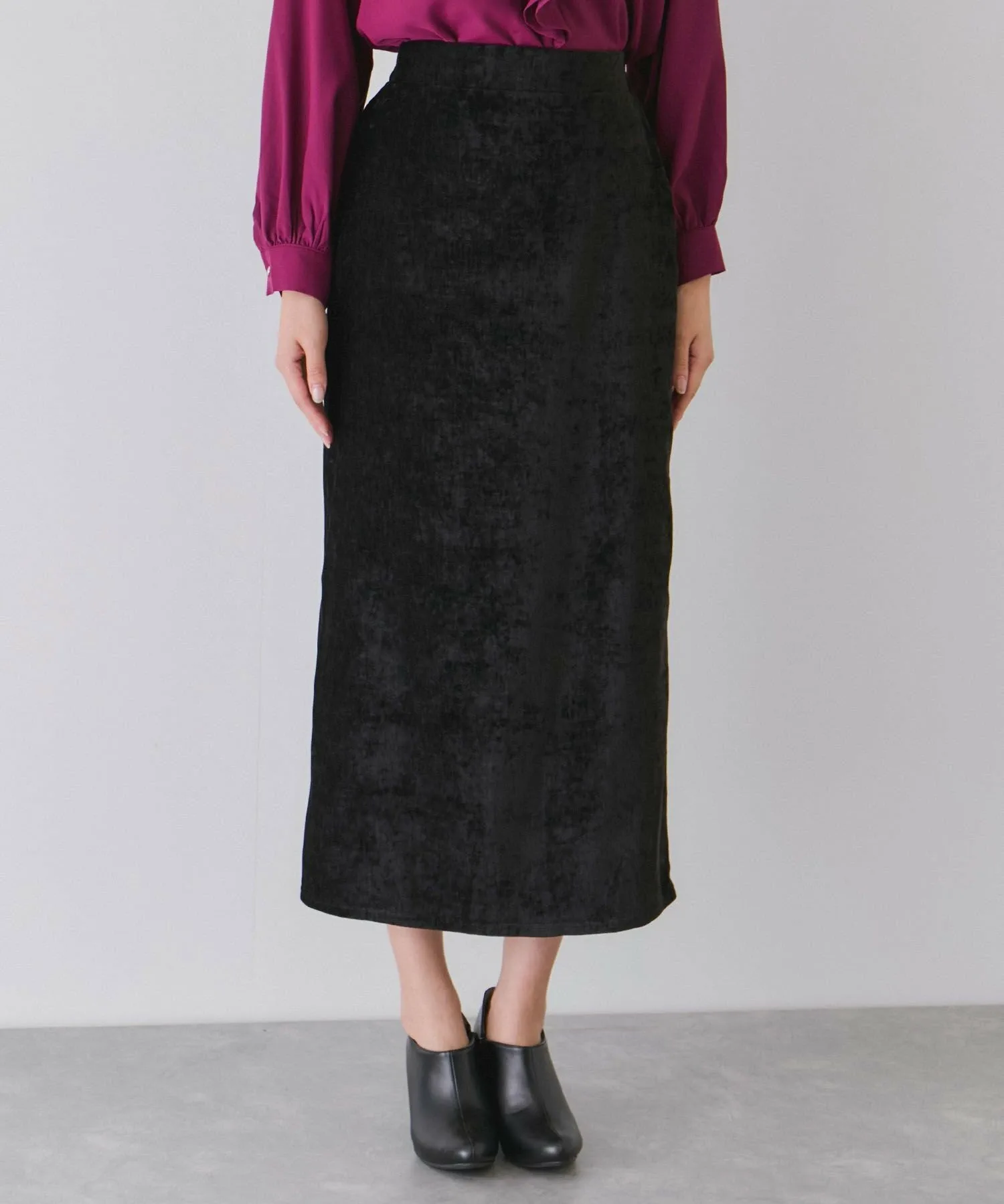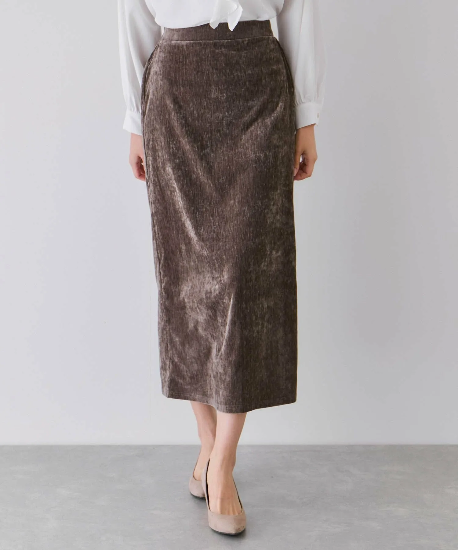 Узкая юбка из велюра с элегантным блеском. [Дизайн/Силуэт]