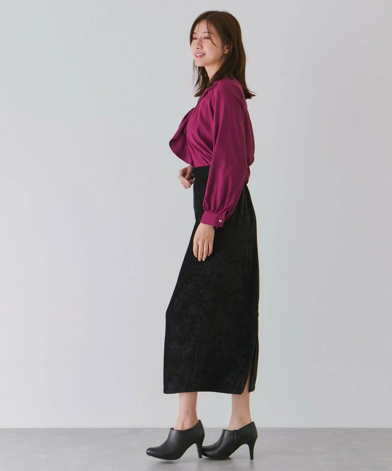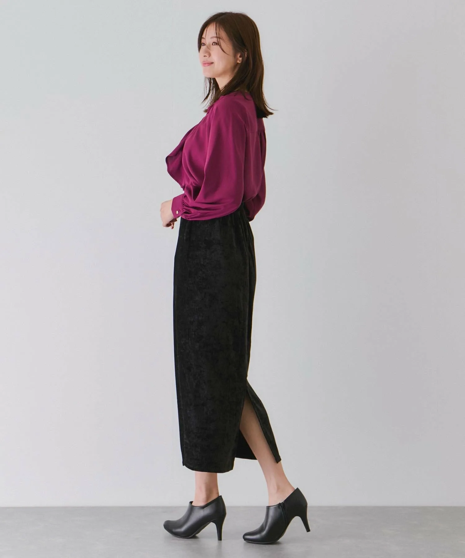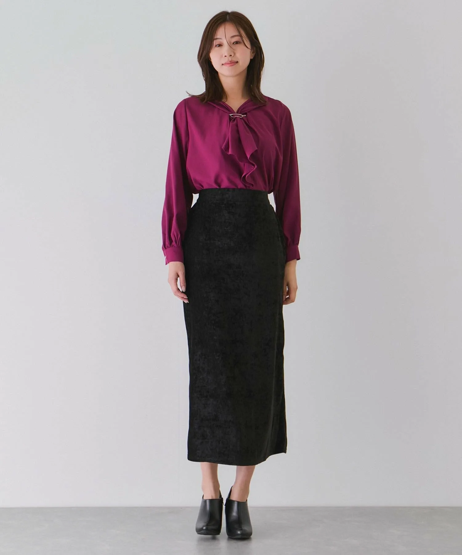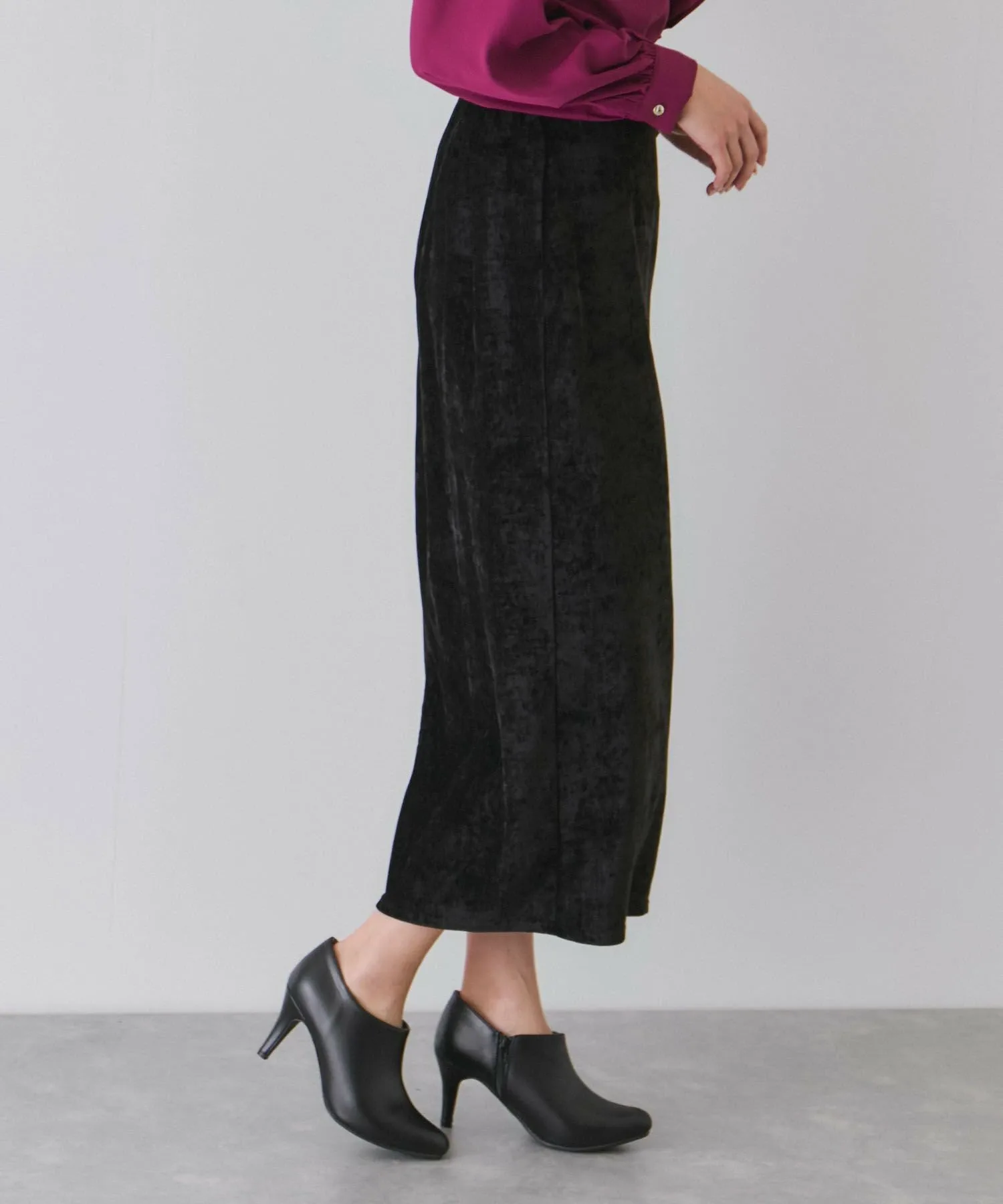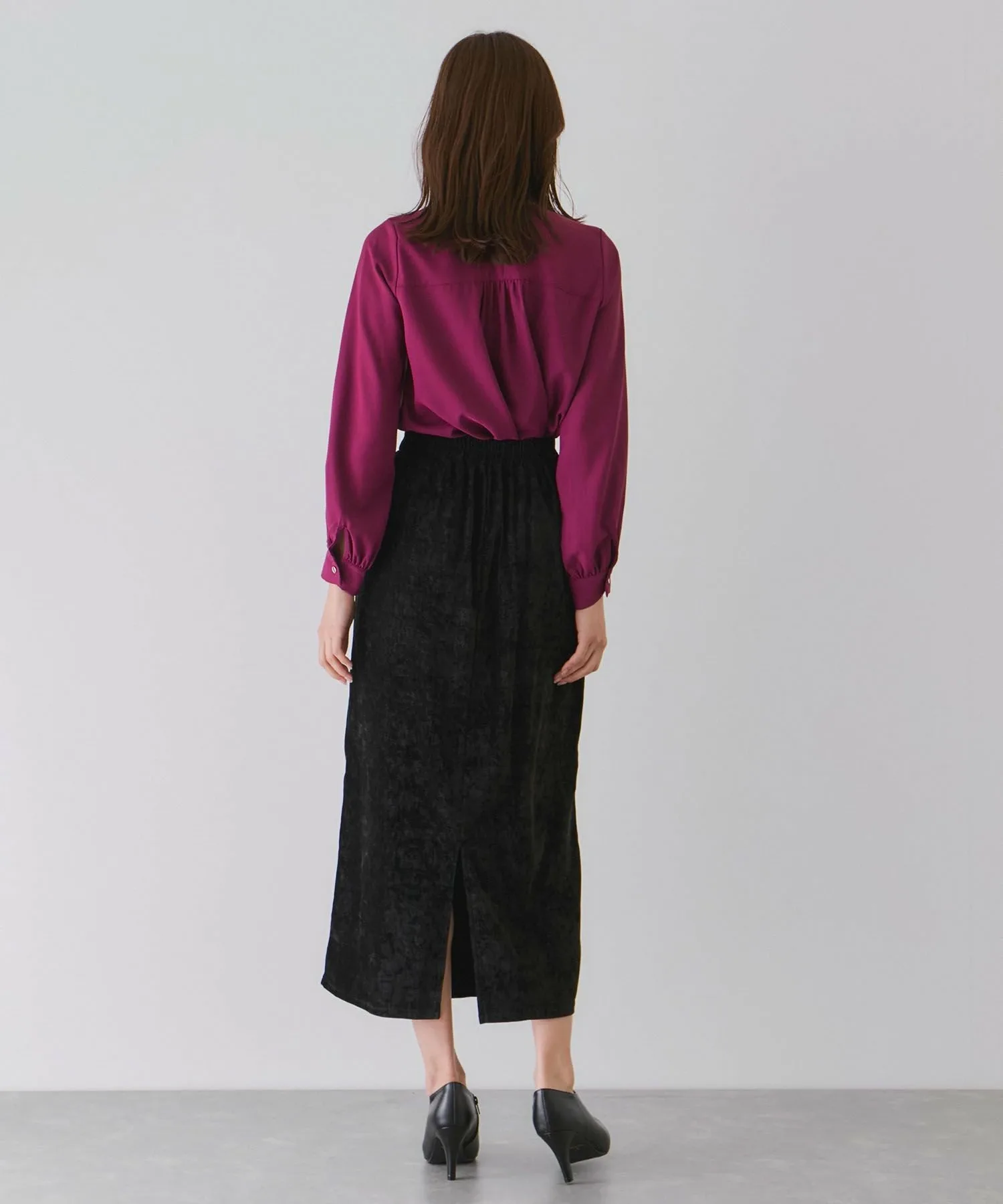 Узкая юбка из велюра с элегантным блеском. [Дизайн/Силуэт]