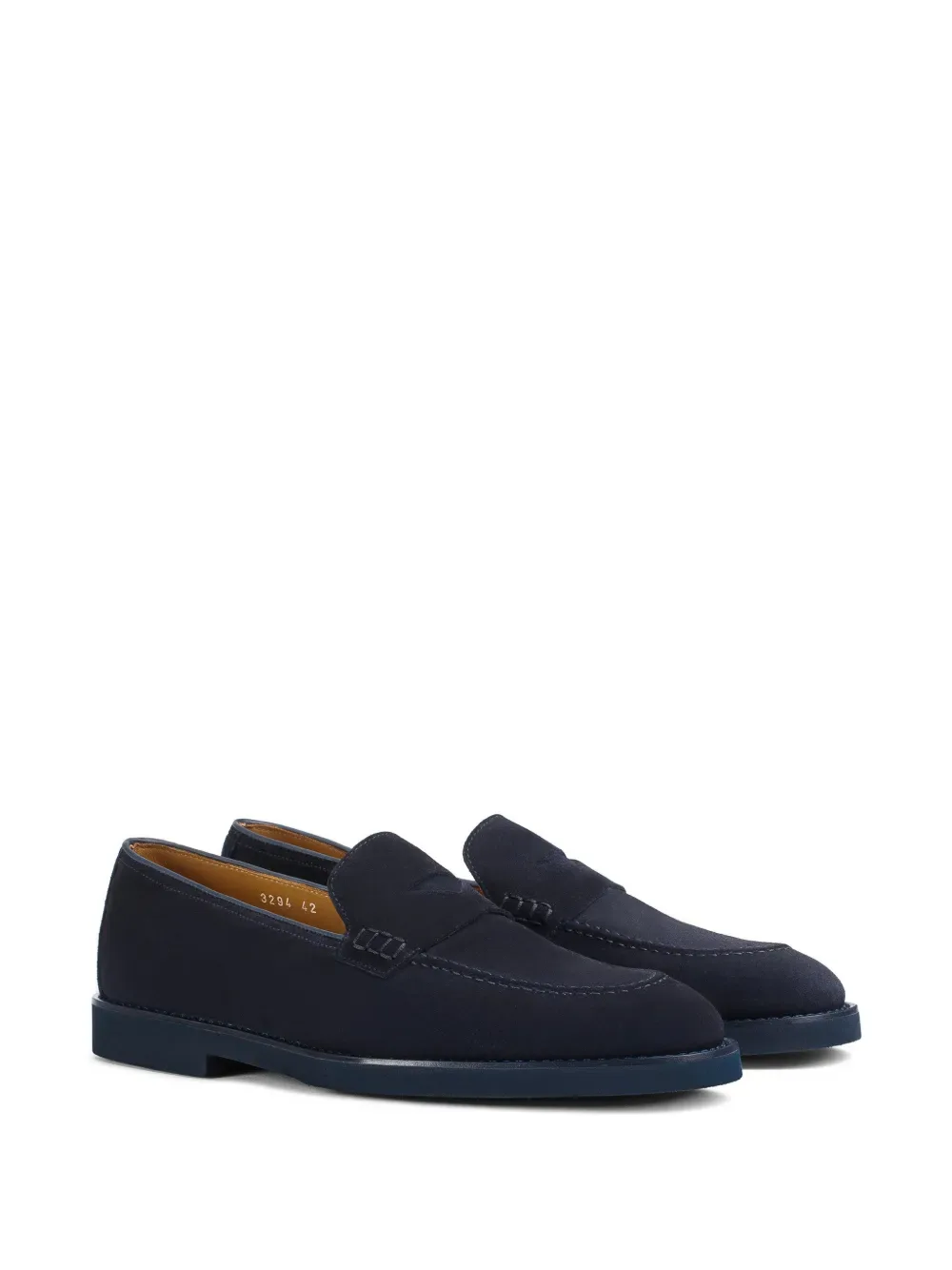 Синий замшевый лофер с декоративной прострочкой, без застежки, с фирменной стелькой