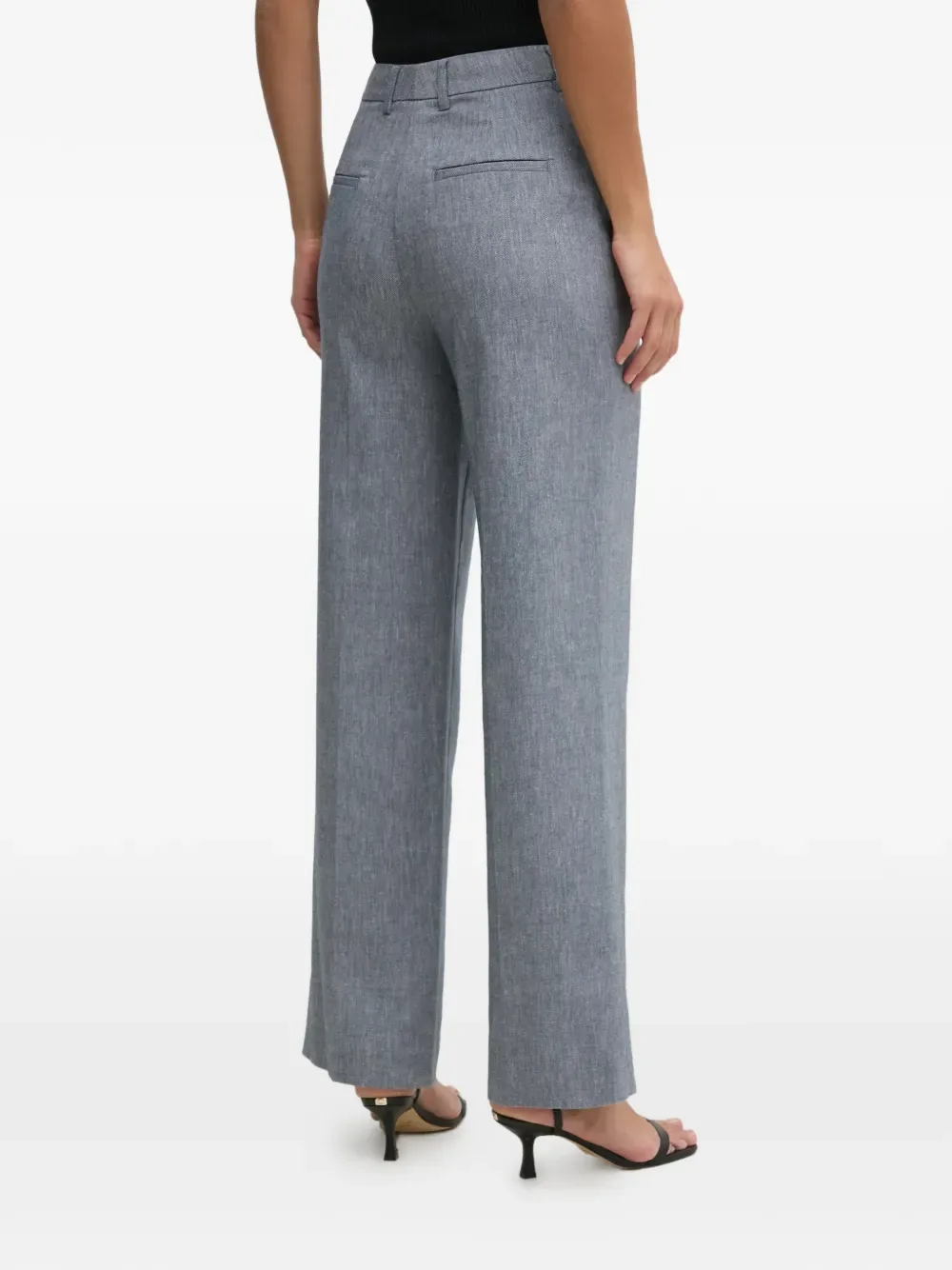 Серо-синие широкие брюки с шлевками для ремня, боковыми карманами в шве и задними прорезными карманами