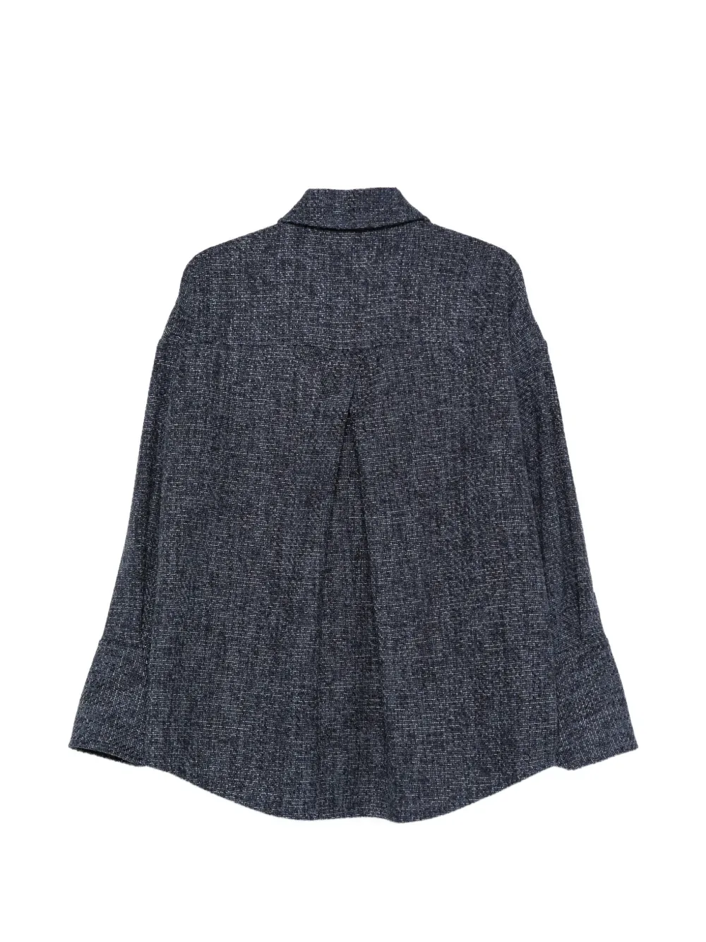Темно-синий, застежка на кнопки, классический воротник, длинные рукава