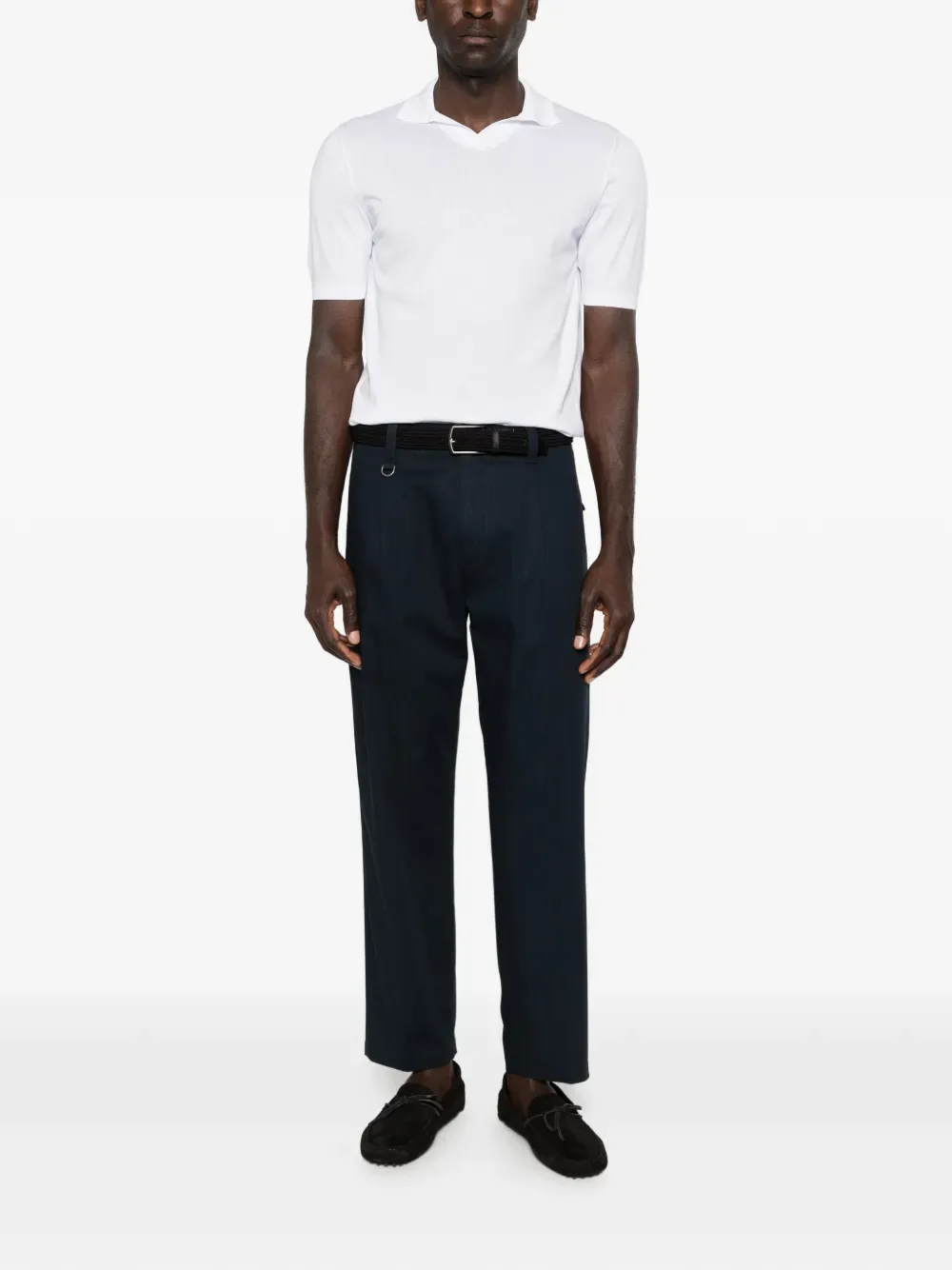 Белая футболка-поло с короткими рукавами и ребристым подолом