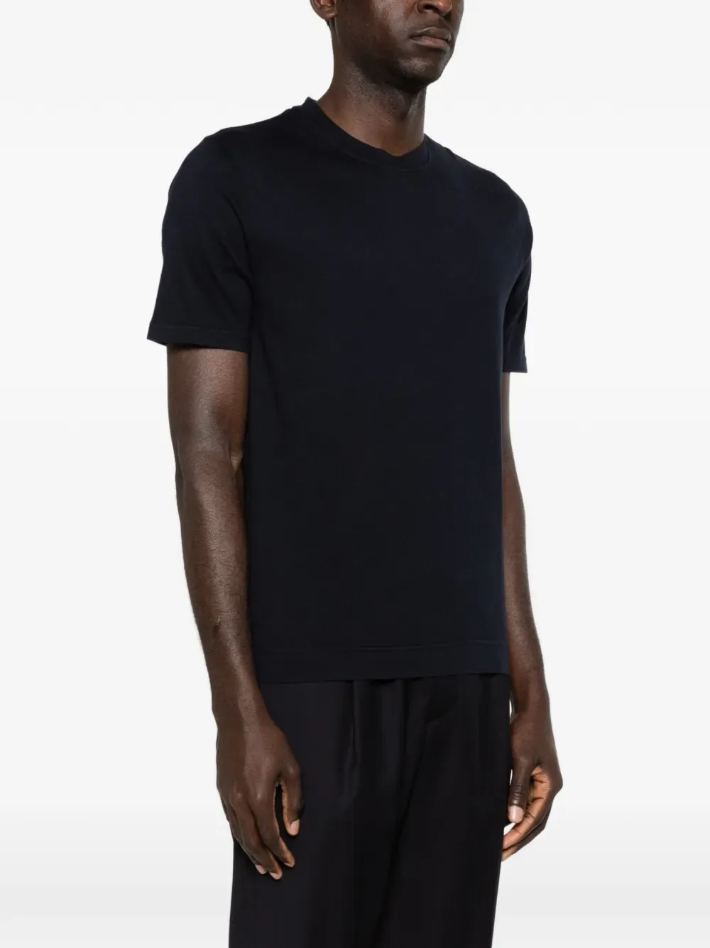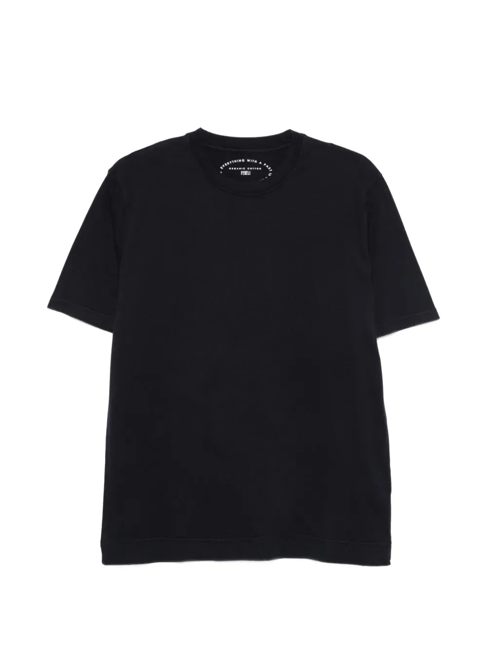 Темно-синяя хлопковая футболка с круглым вырезом и короткими рукавами