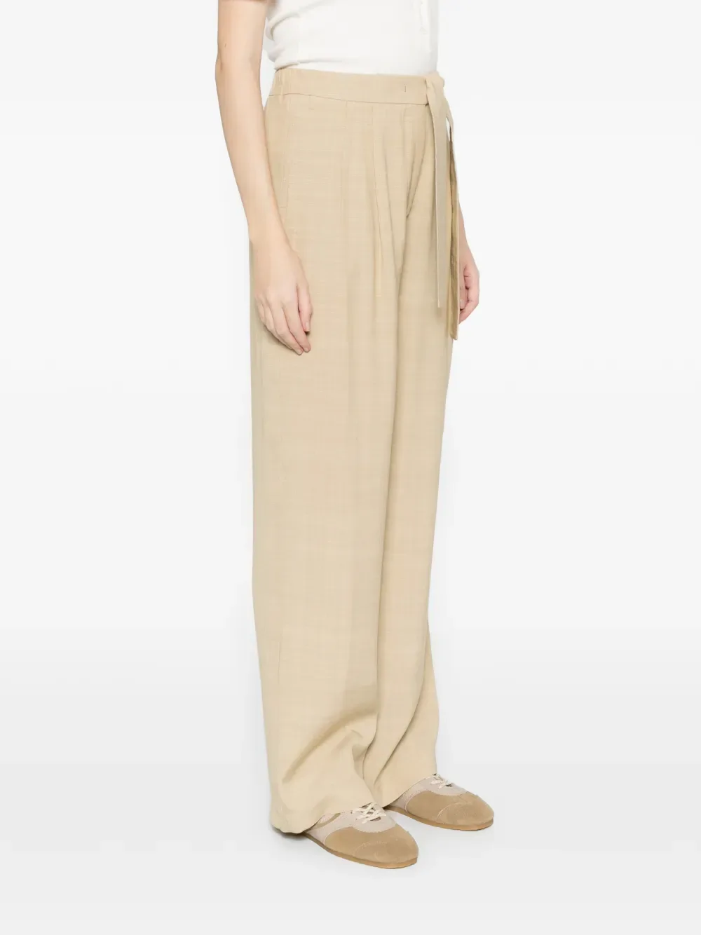 Бежевые прямые брюки с поясом